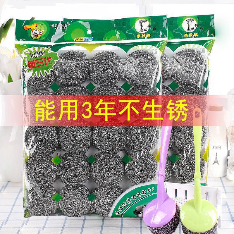 不锈钢钢丝球大号不掉渣清洁球家用洗碗刷锅神器厨房用品手柄批发