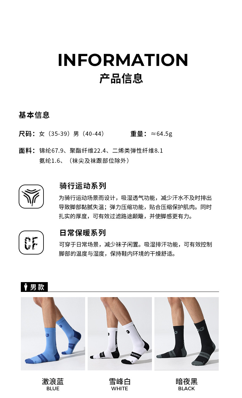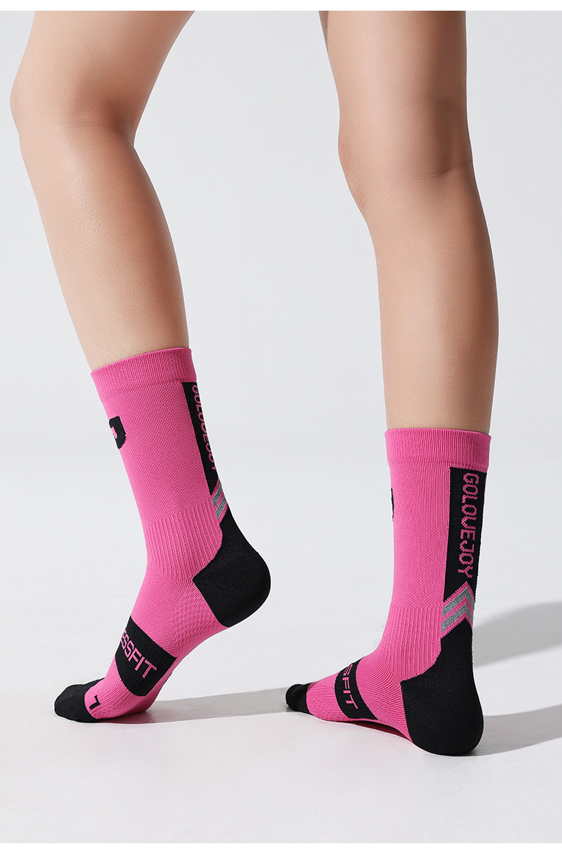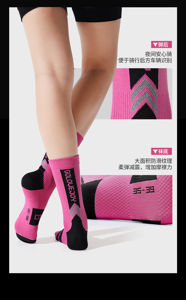 运动袜子跑步健身篮球骑行袜自行车吸汗防滑减震中筒反光压力袜子
