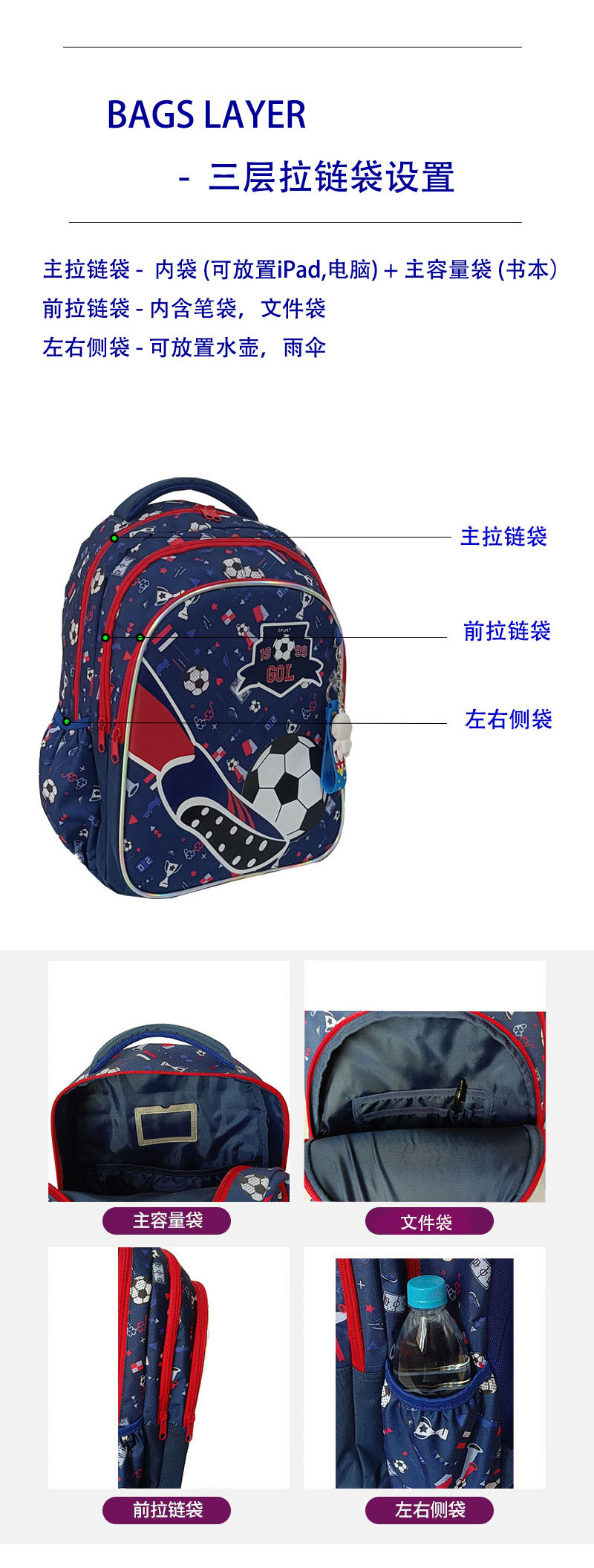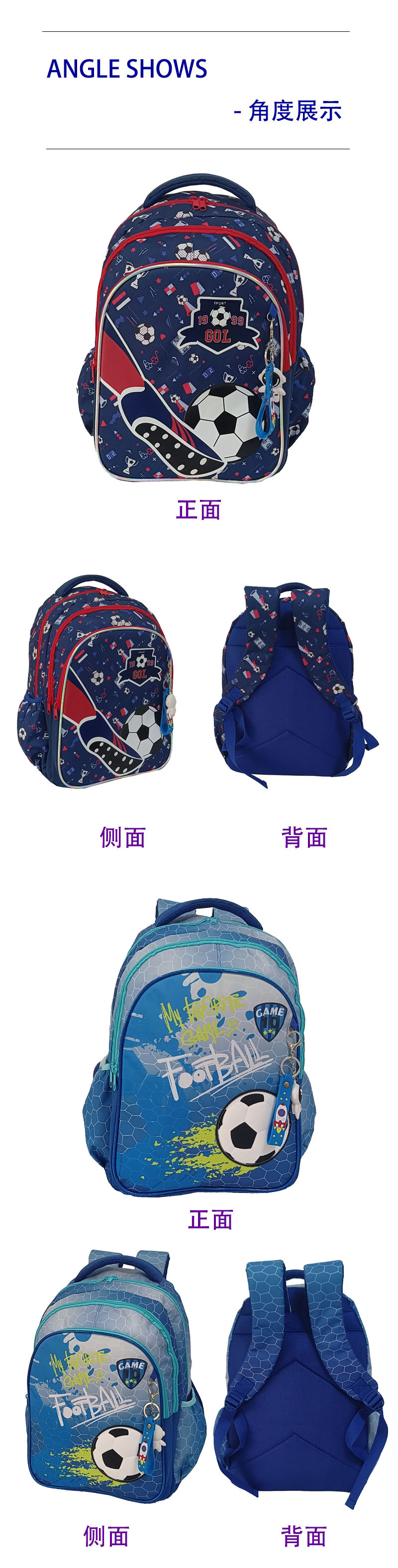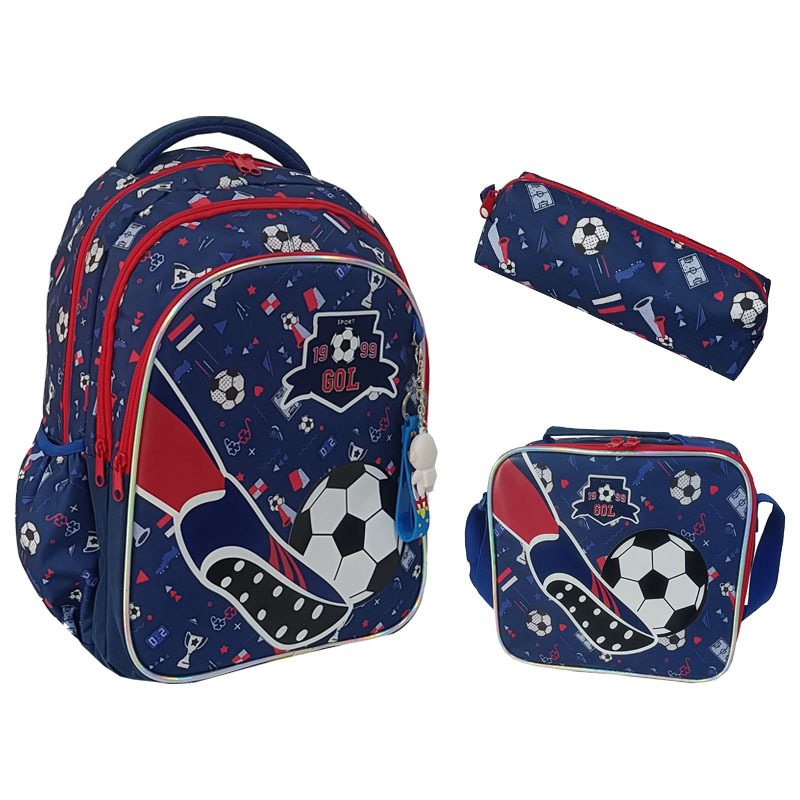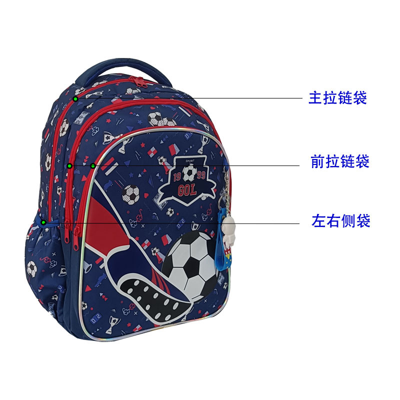 新款足球小学生护脊书包男女儿童大容量书包三件套运动