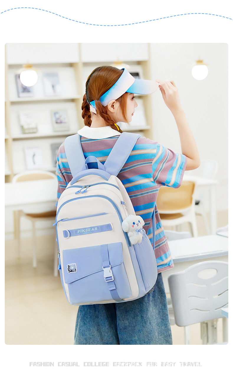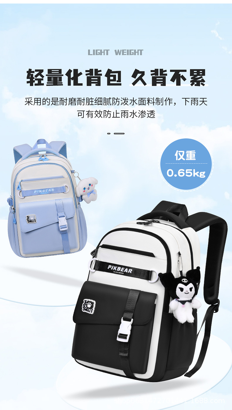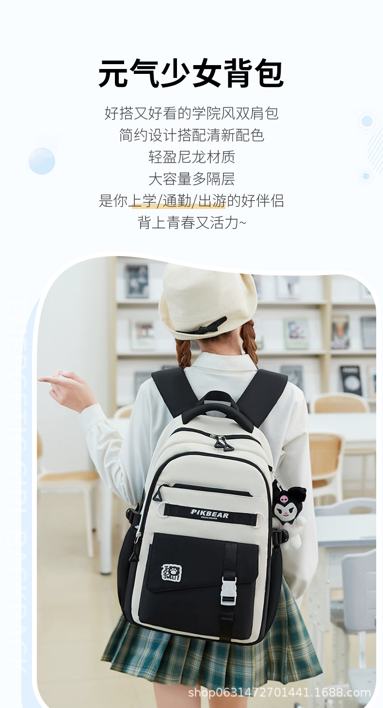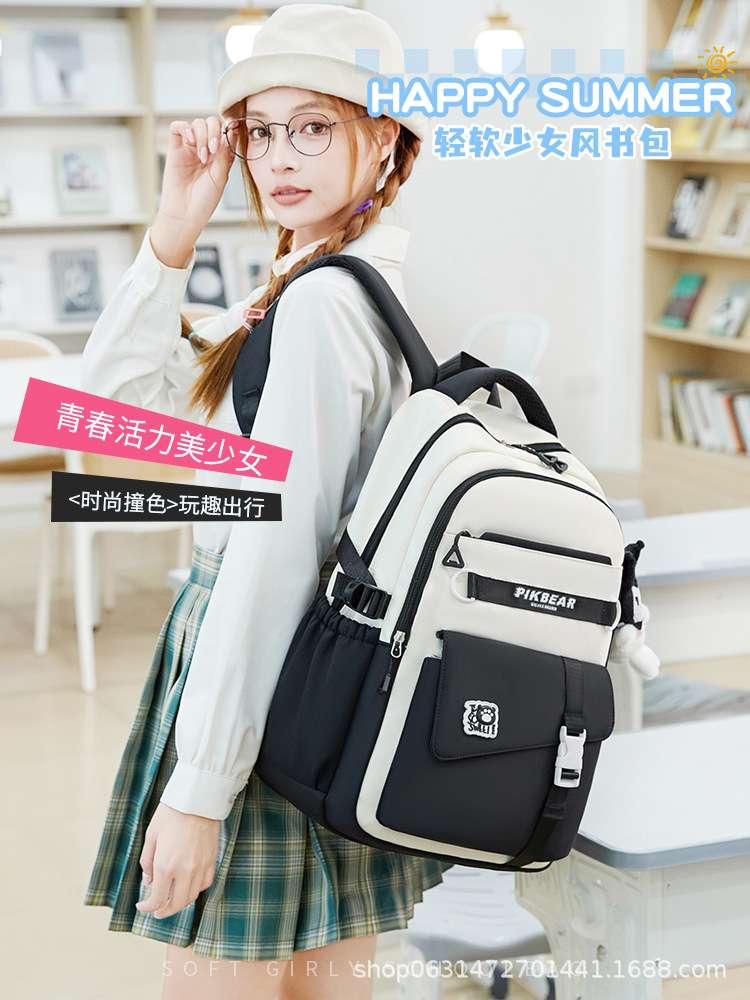 2024超轻便耐脏书包初中生女孩防泼水尼龙牛津布超轻护脊双肩背包