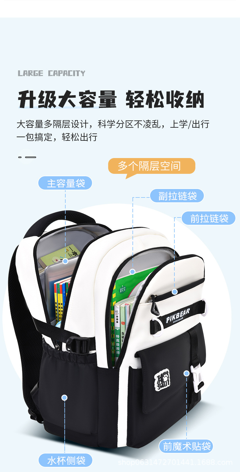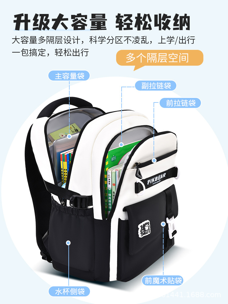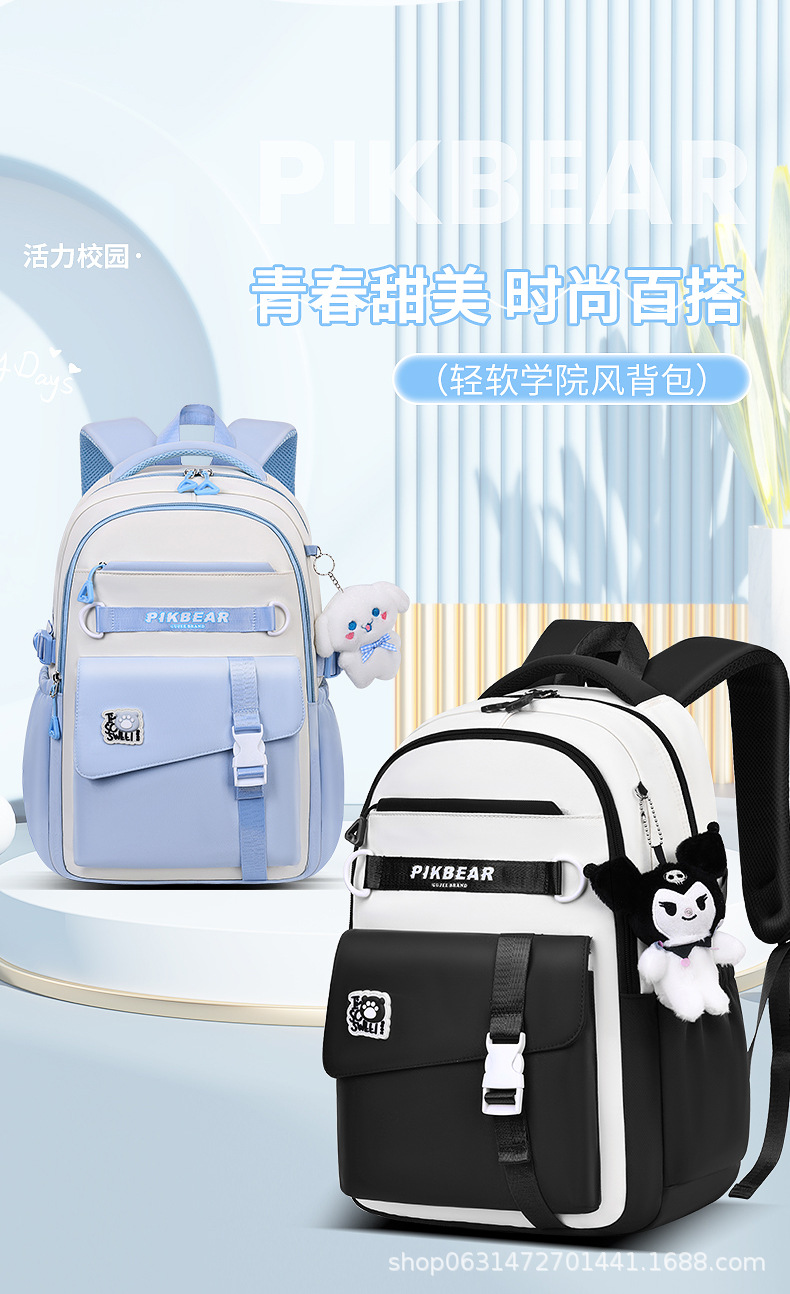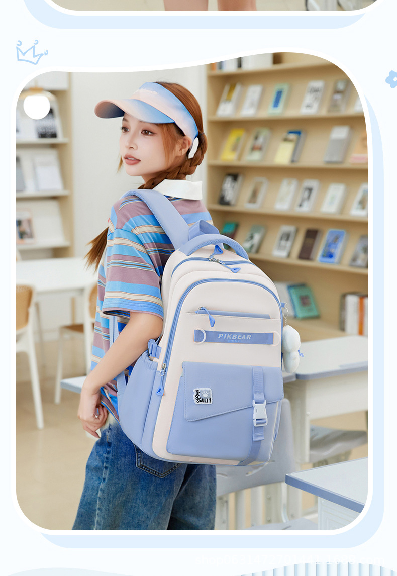 2024超轻便耐脏书包初中生女孩防泼水尼龙牛津布超轻护脊双肩背包