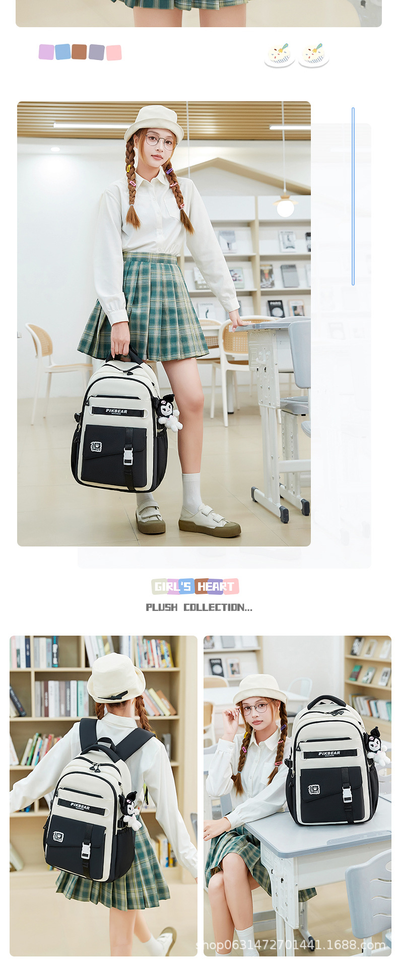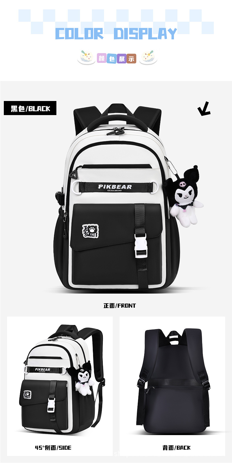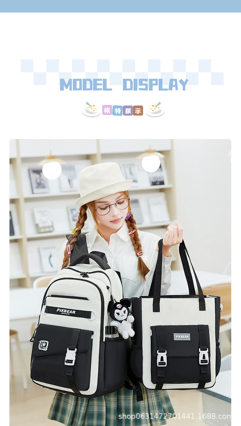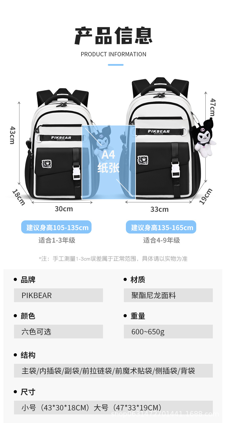 2024超轻便耐脏书包初中生女孩防泼水尼龙牛津布超轻护脊双肩背包