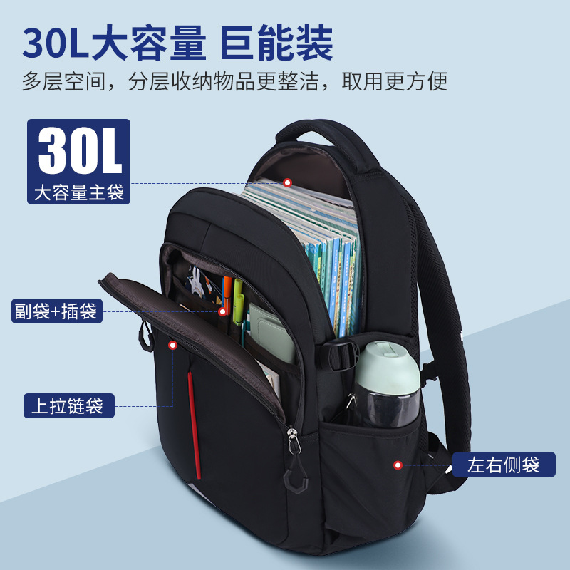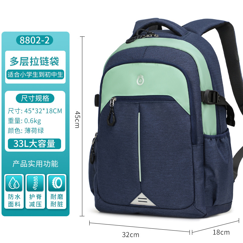 中学生大容量撞色书包大背包小学初中高中生防水背包可放电脑背包