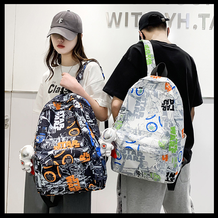 新款潮酷涂鸦初中生书包 简约迷彩高中生森系大容量大学生双肩包
