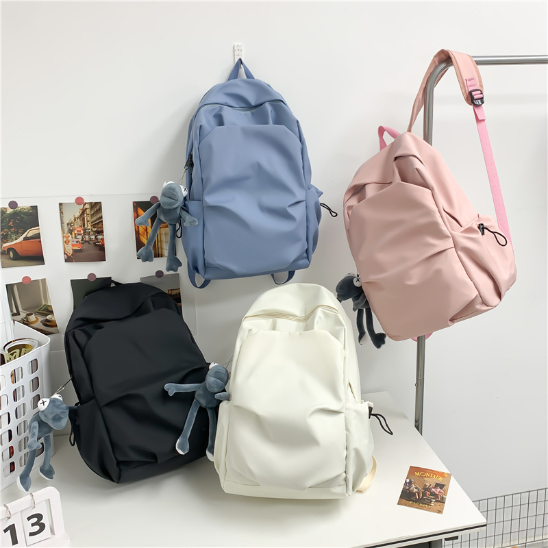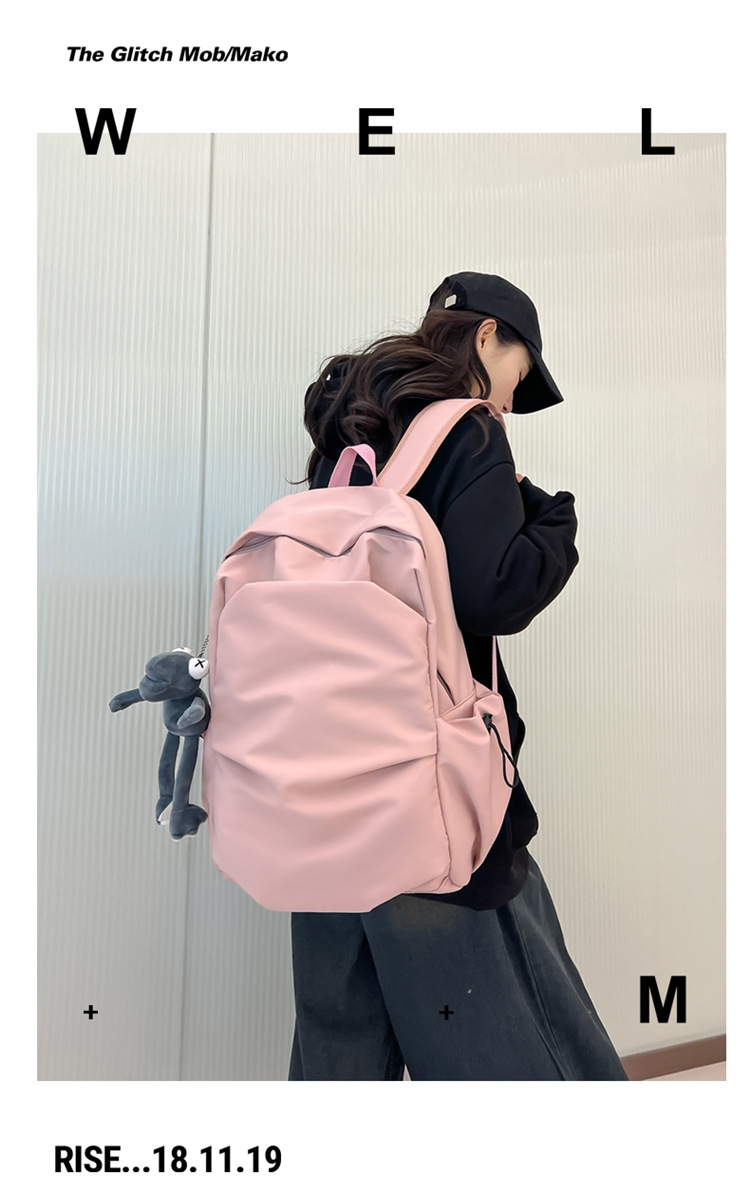 极简风书包女大学生简约大容量双肩包初高中百搭电脑背包定制LOGO