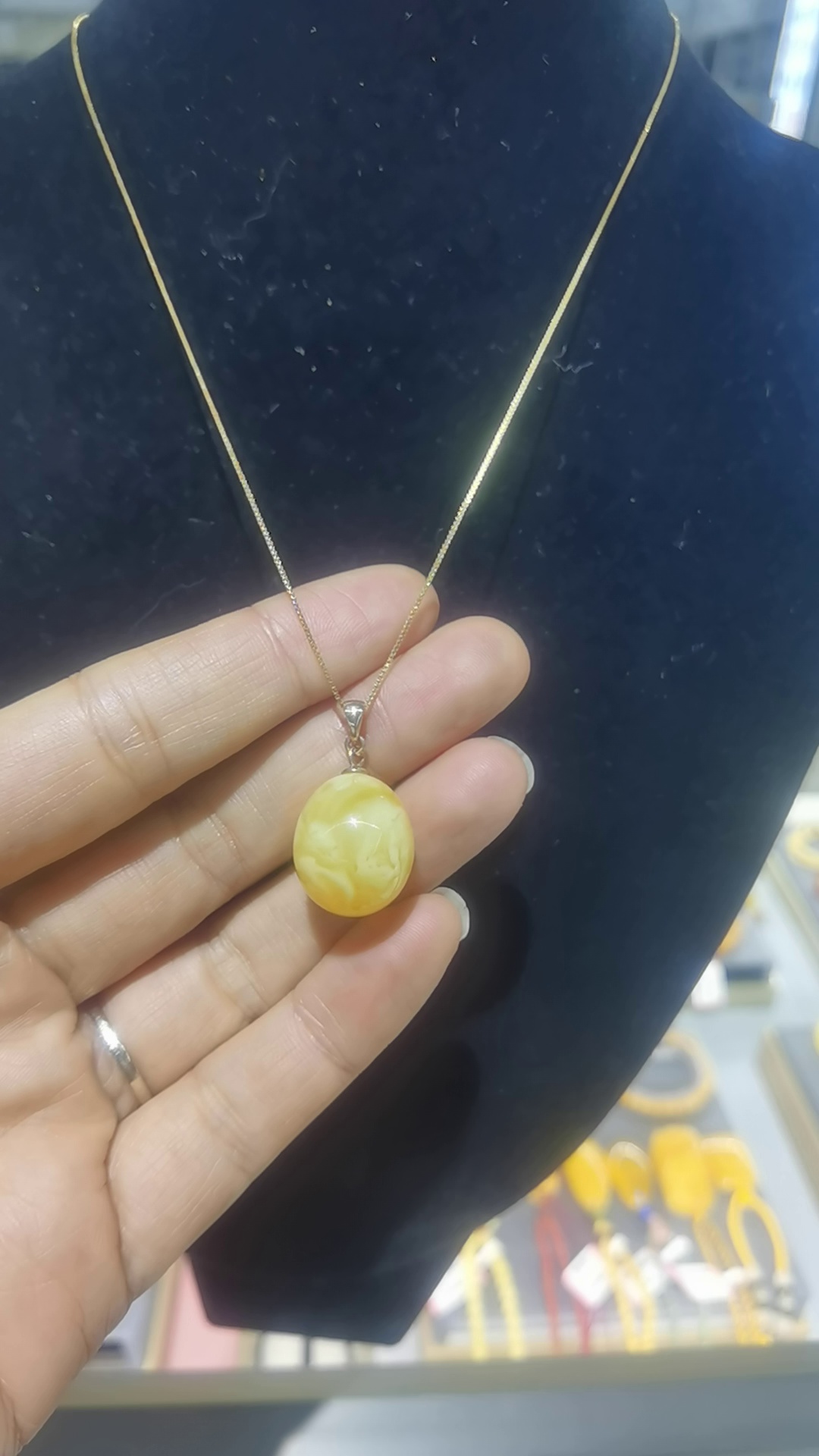 俄罗斯天然蜜蜡搭配银镀金项链