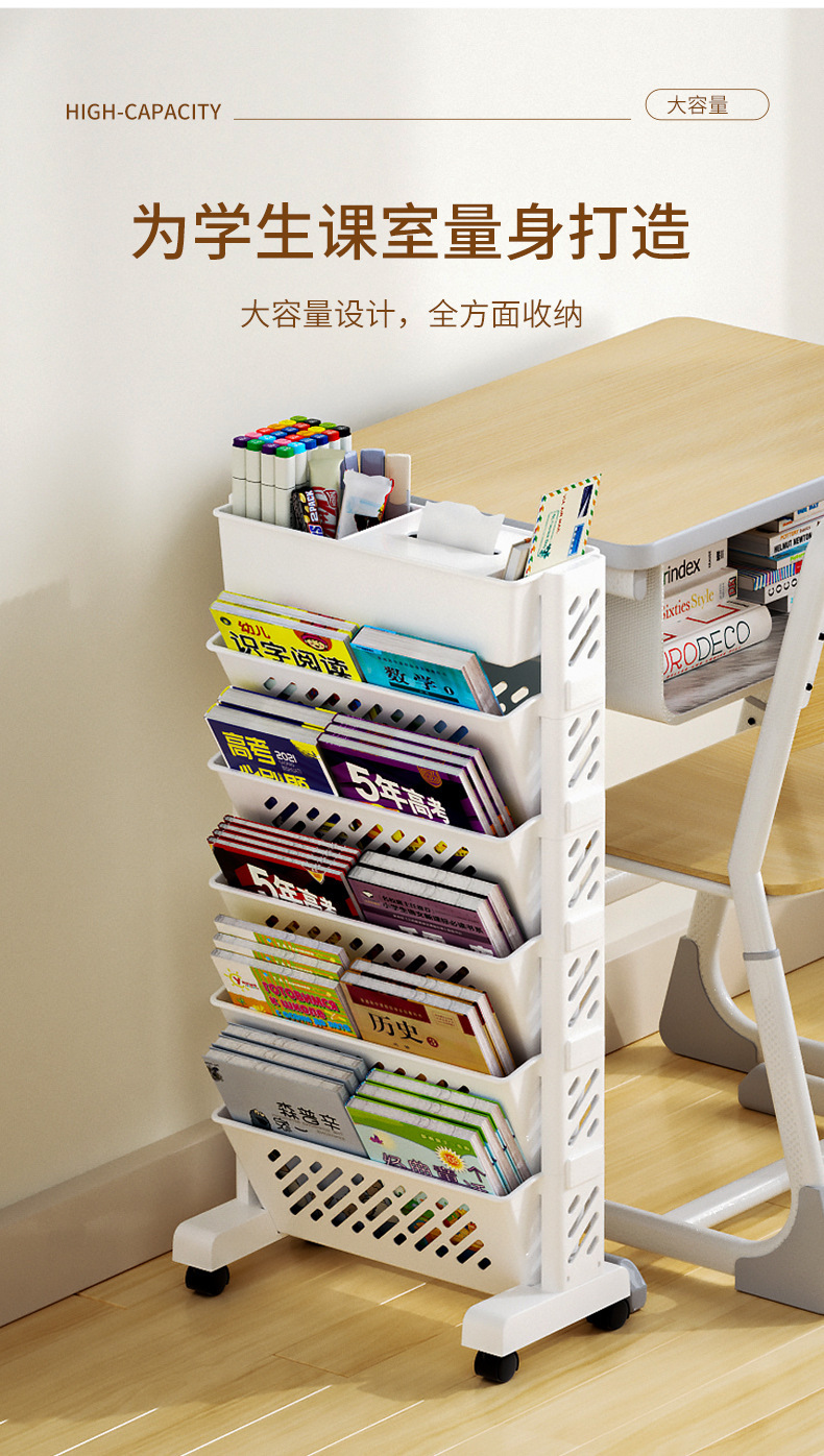 可移动收纳书本置物架宝宝绘本架杂志文具纸巾多层落地桌边书架