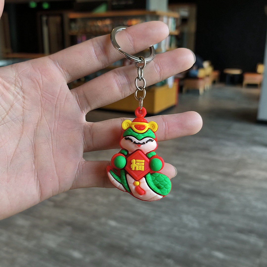 新品蛇年大吉钥匙扣新年挂件国潮卡通公仔生肖吉祥物挂饰礼品批发