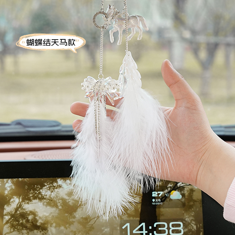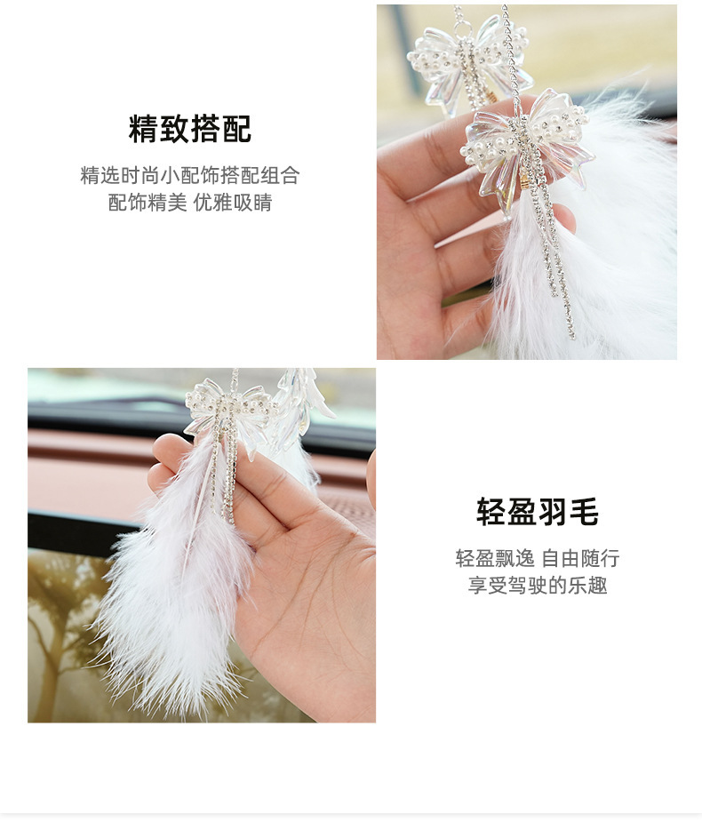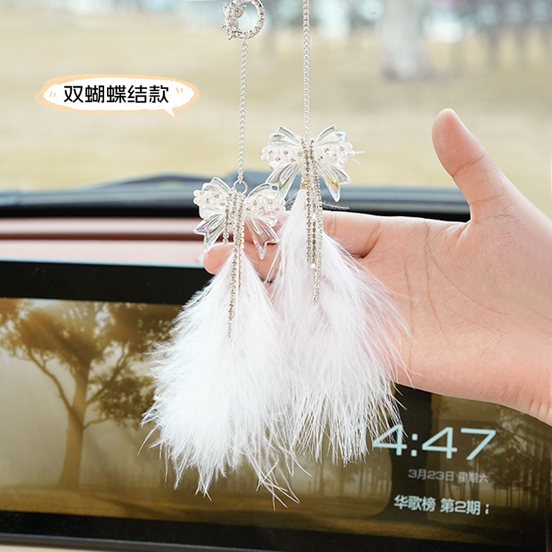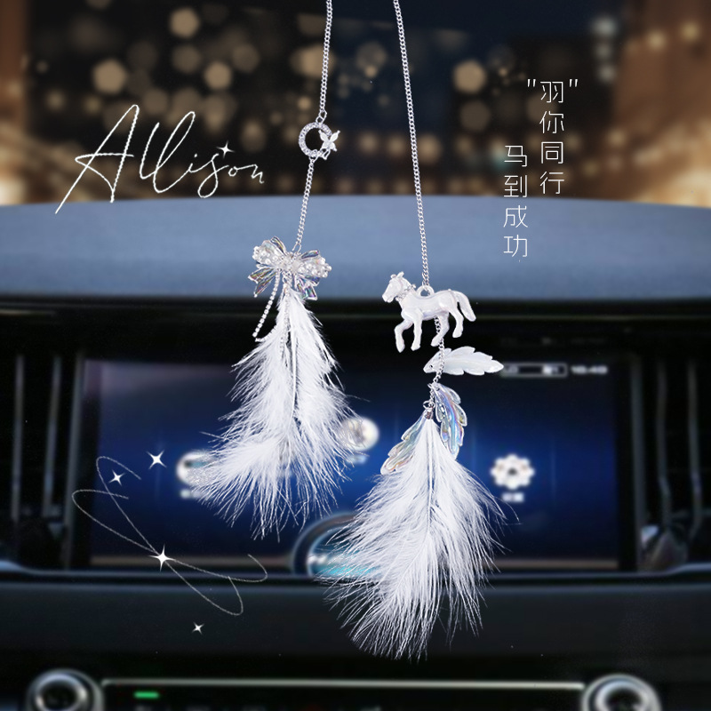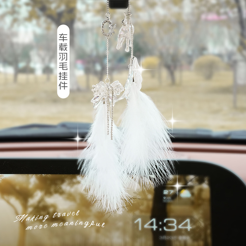 新款羽毛汽车挂件高级感车内后视镜装饰挂件女生创意时尚车载挂饰