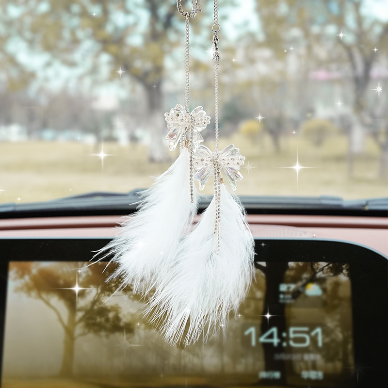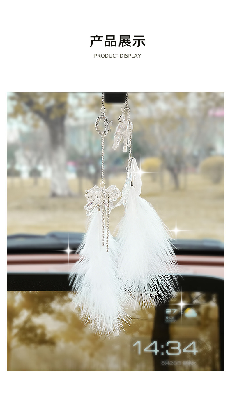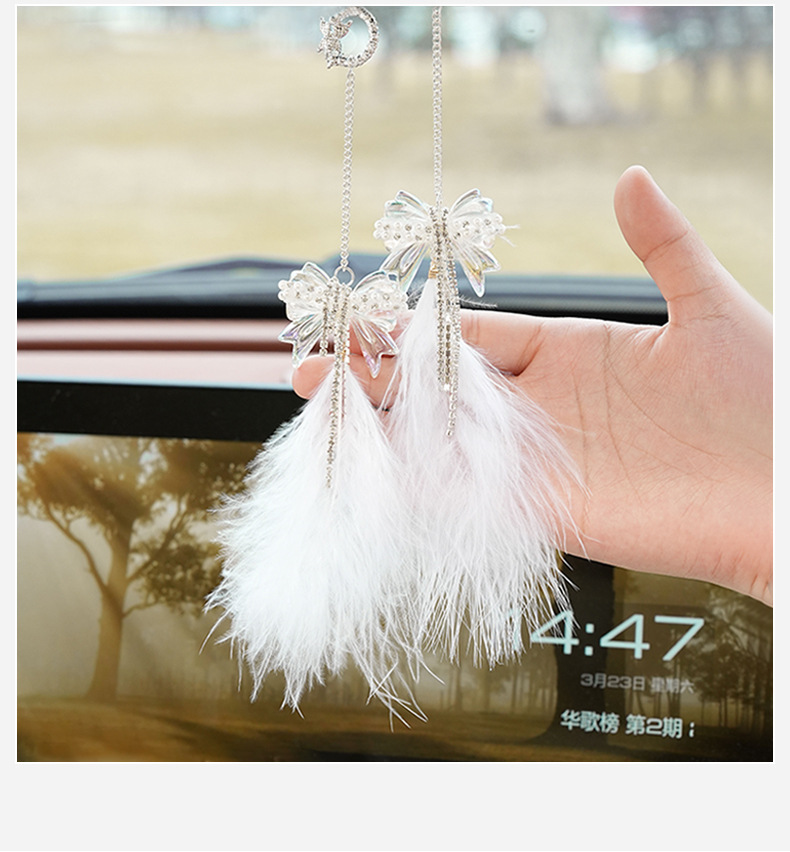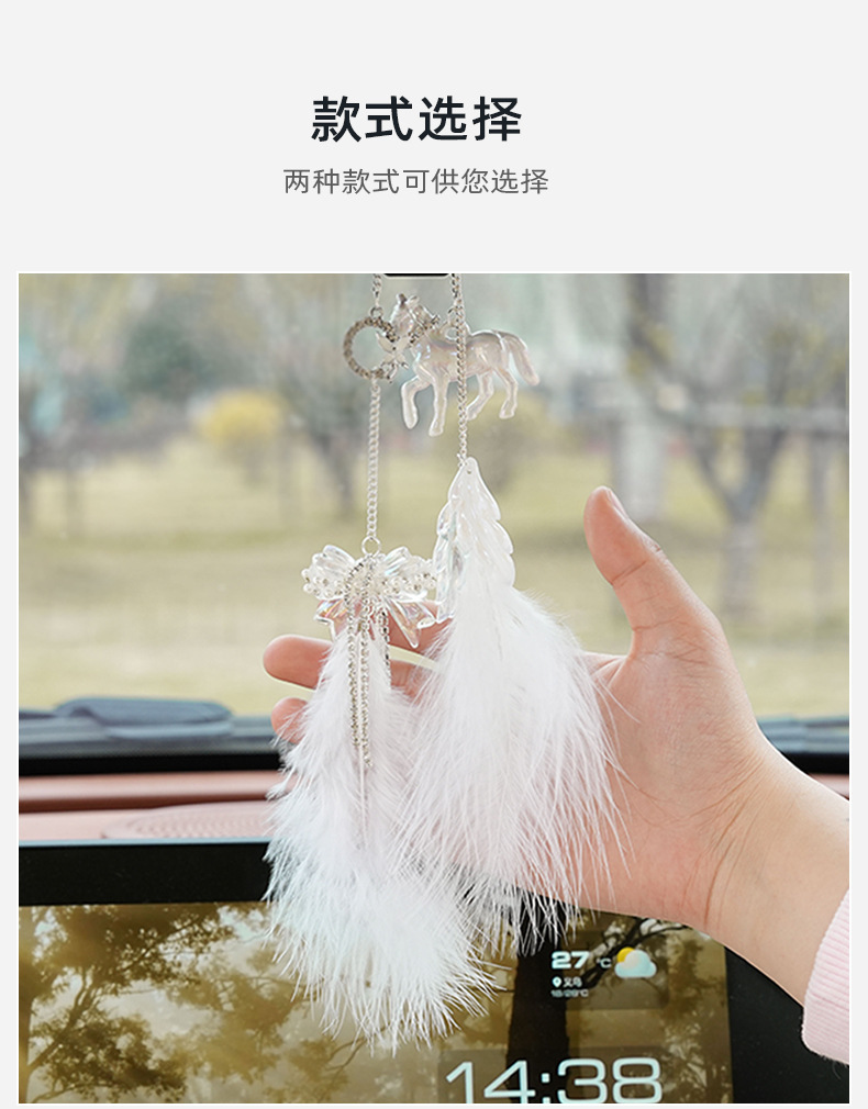 新款羽毛汽车挂件高级感车内后视镜装饰挂件女生创意时尚车载挂饰