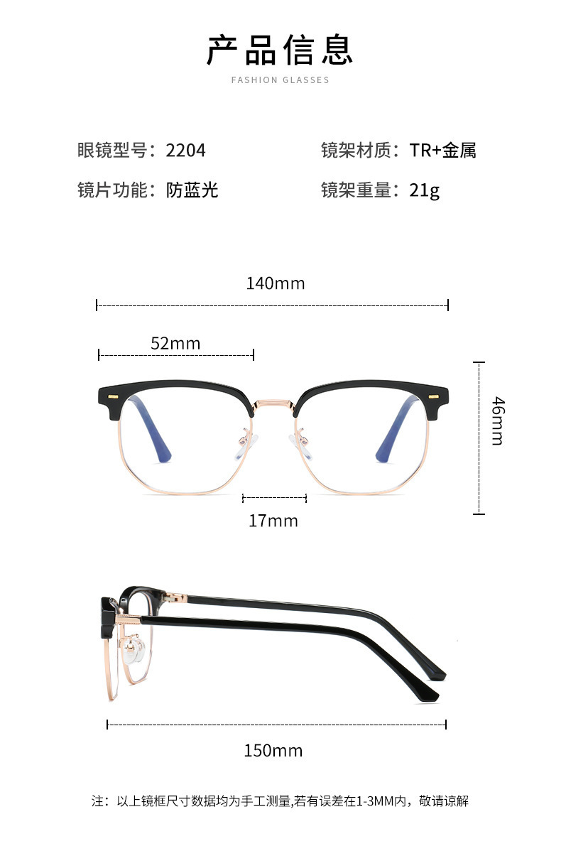 超轻防蓝光眼镜半框文艺休闲理工男款近视度数可配斯文平光眼镜女