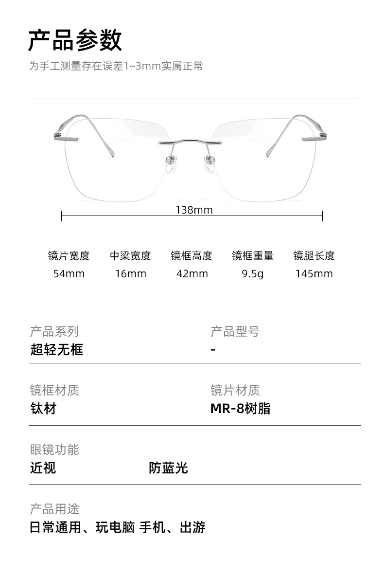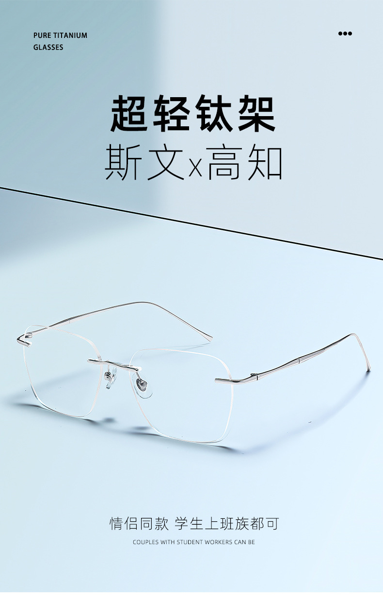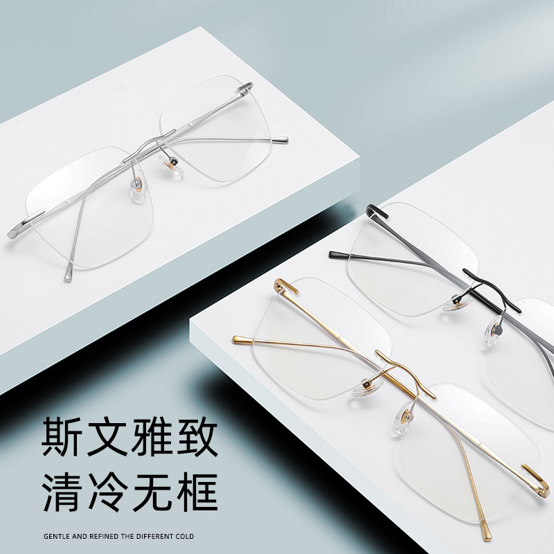 新款丹阳眼镜超轻纯钛眼镜架无框素颜眼镜女竹节纹理眼镜8911现货