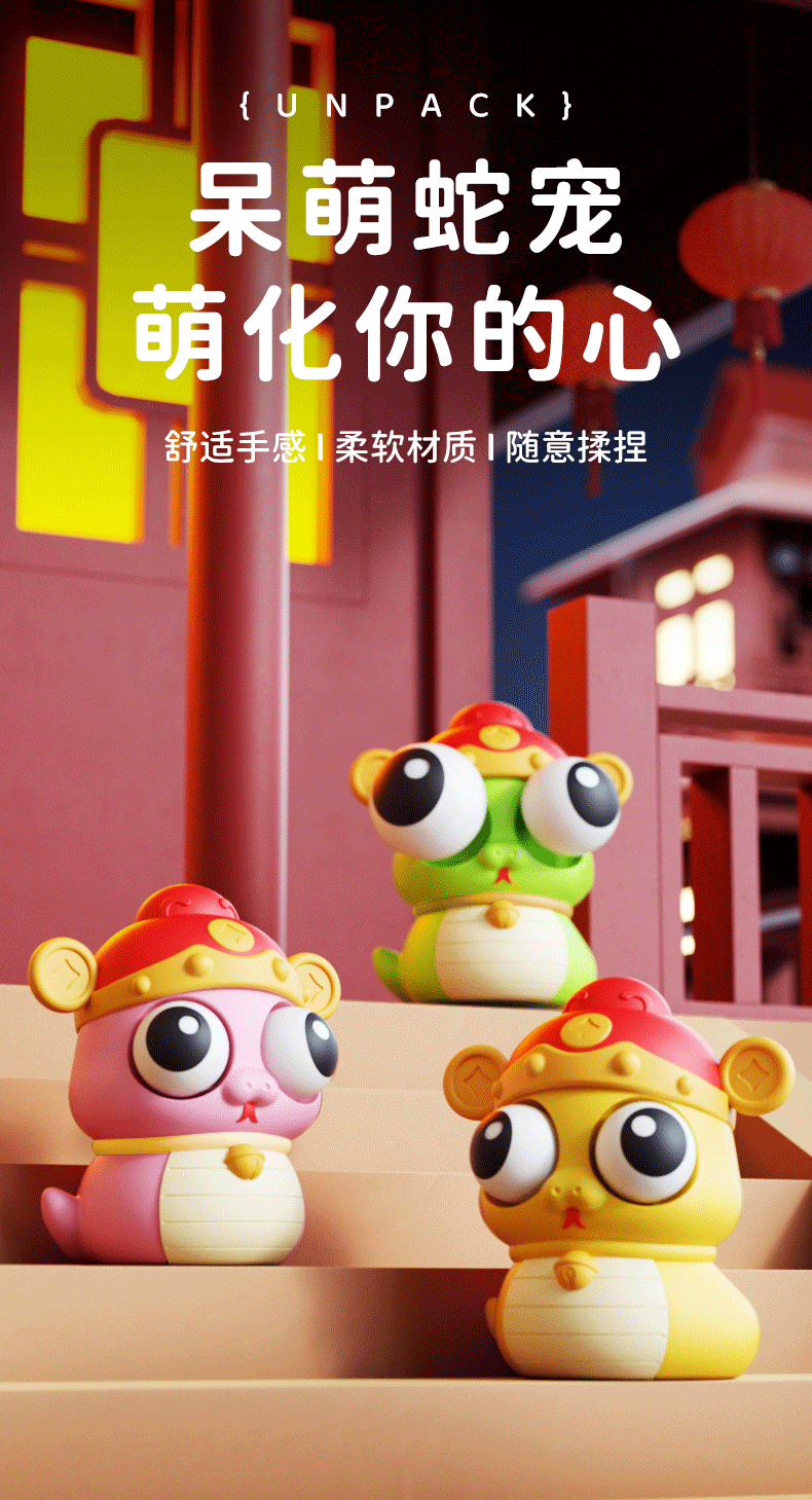 国潮蛇年捏捏乐爆眼富贵蛇创意幼儿园儿童解压减压玩具礼品批发