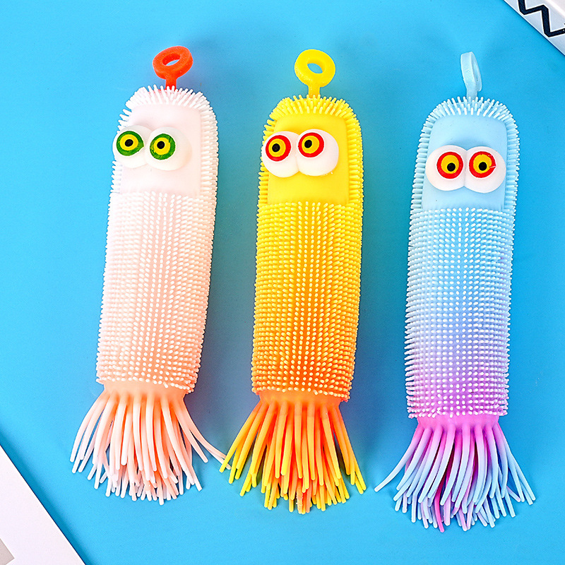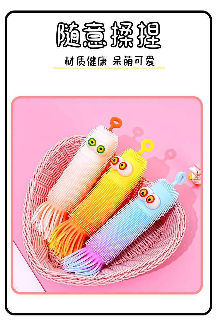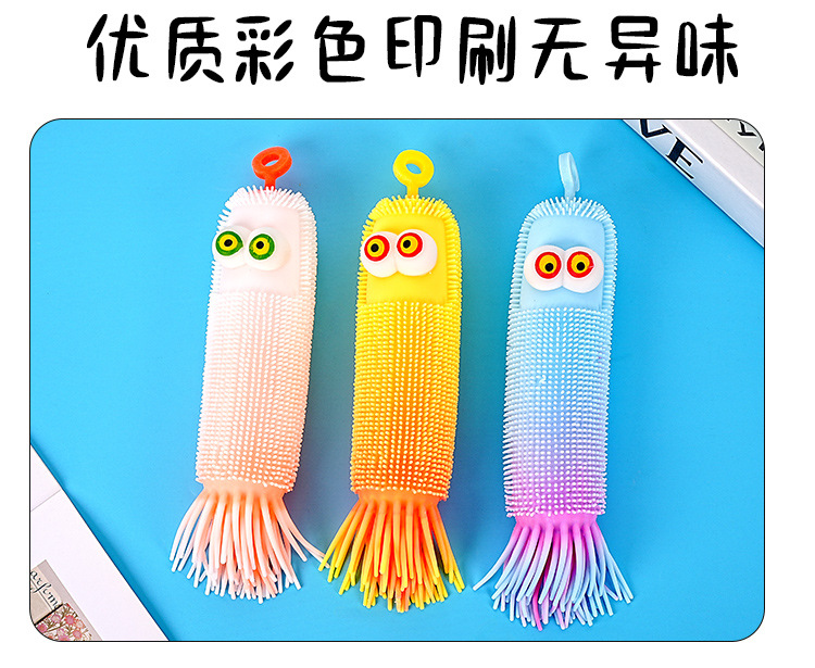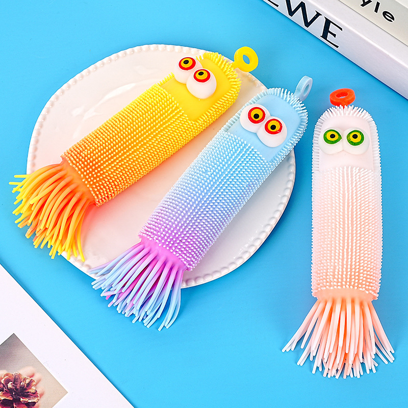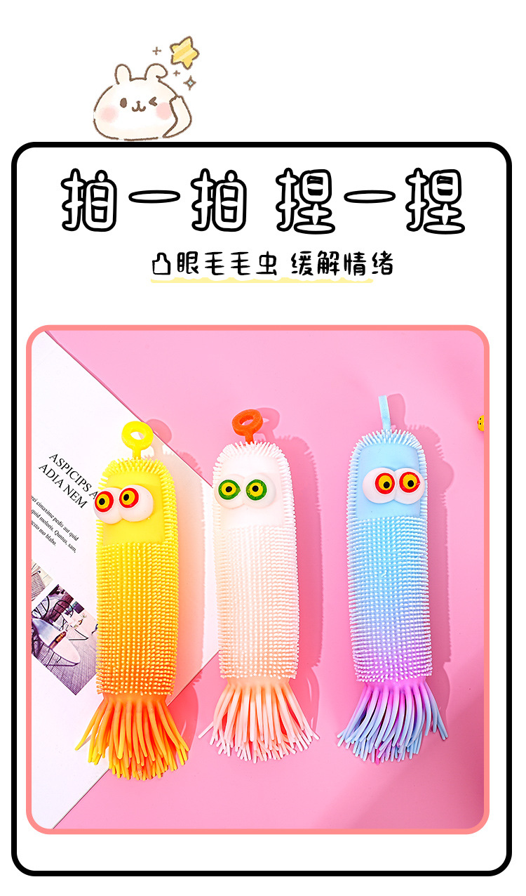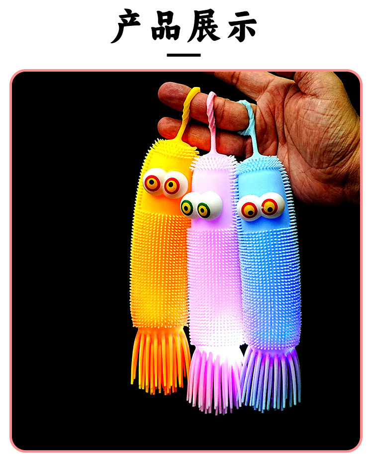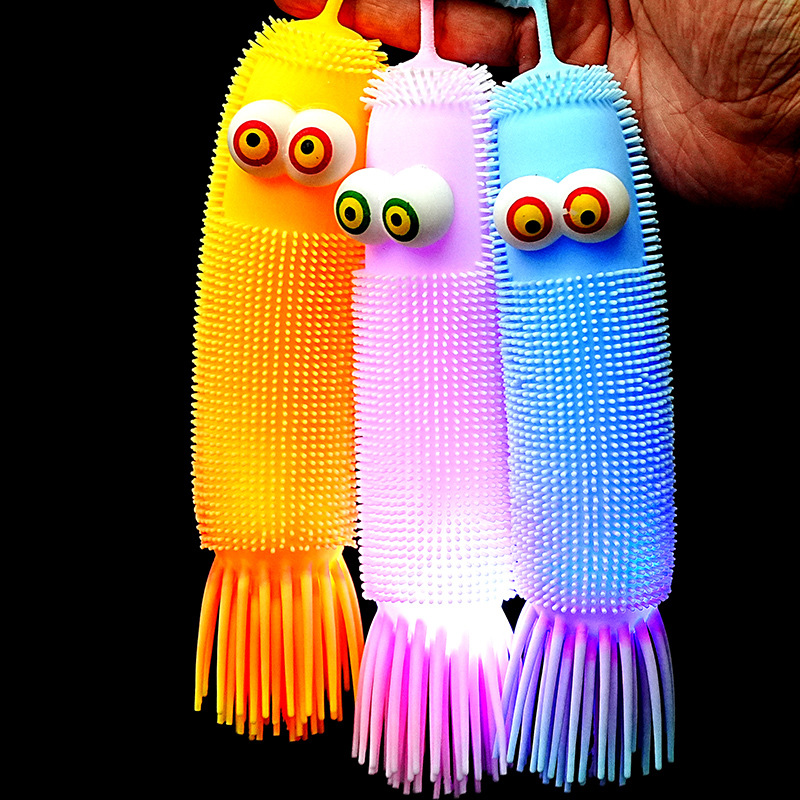 跨境爆款新品弹力解压发光毛毛虫减压捏捏乐发泄整蛊回弹玩具批发