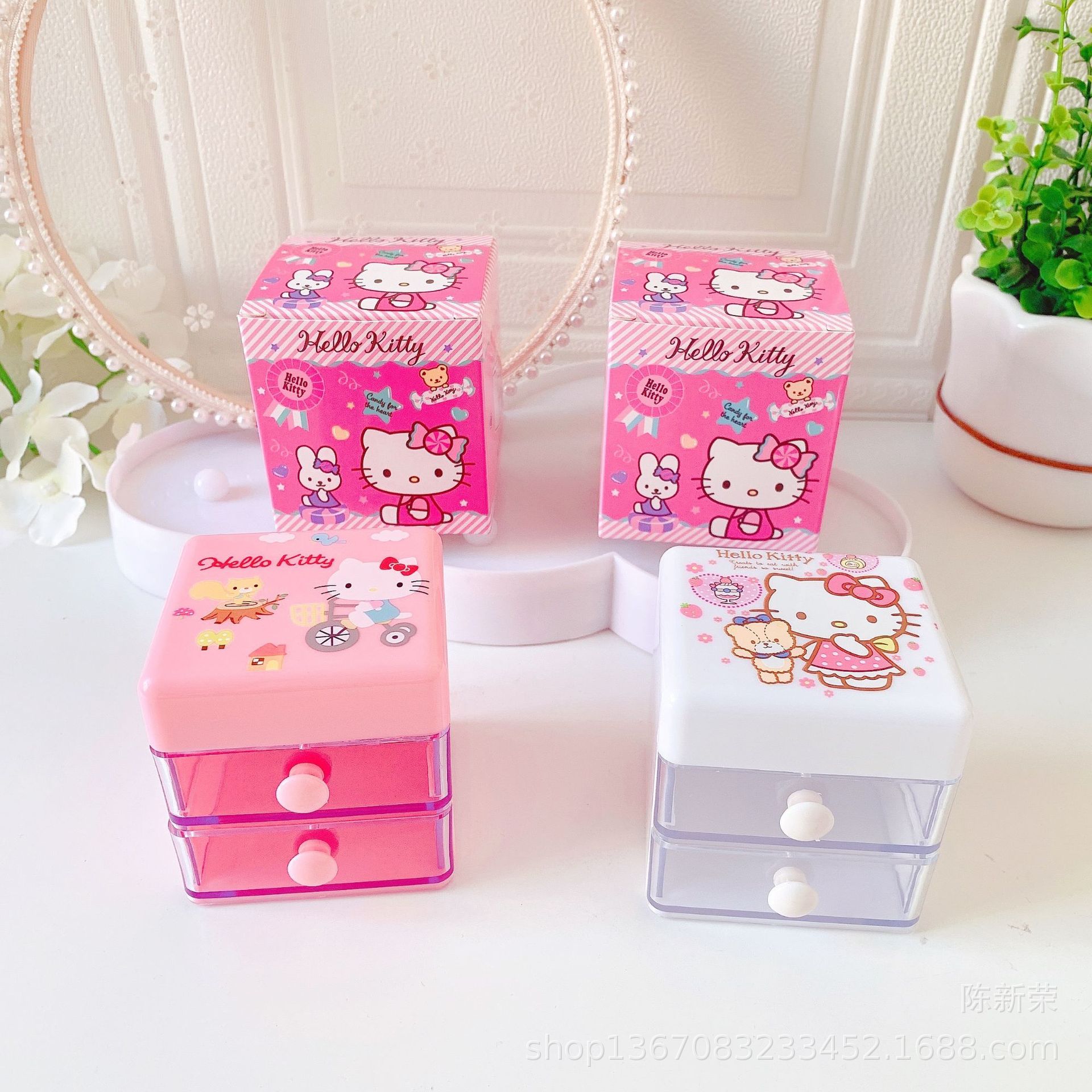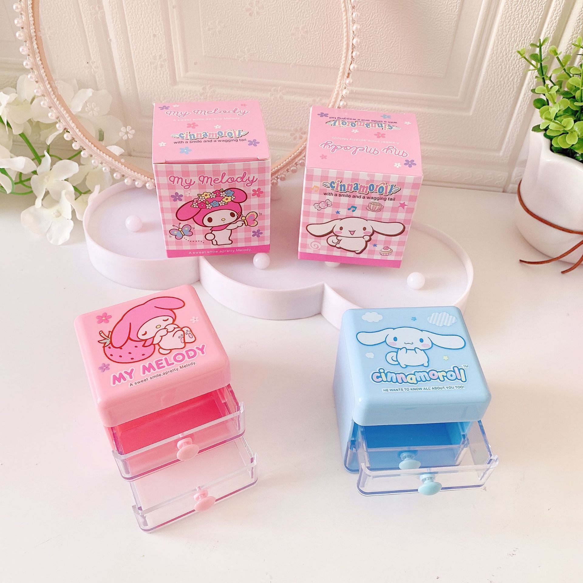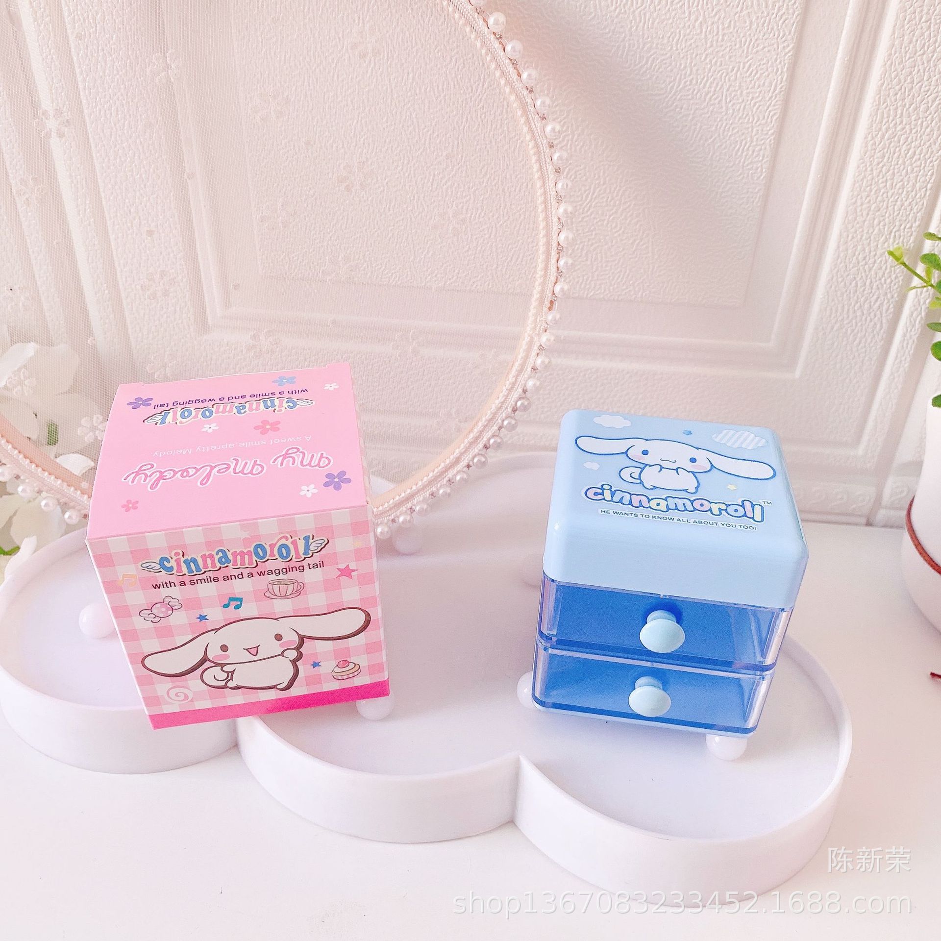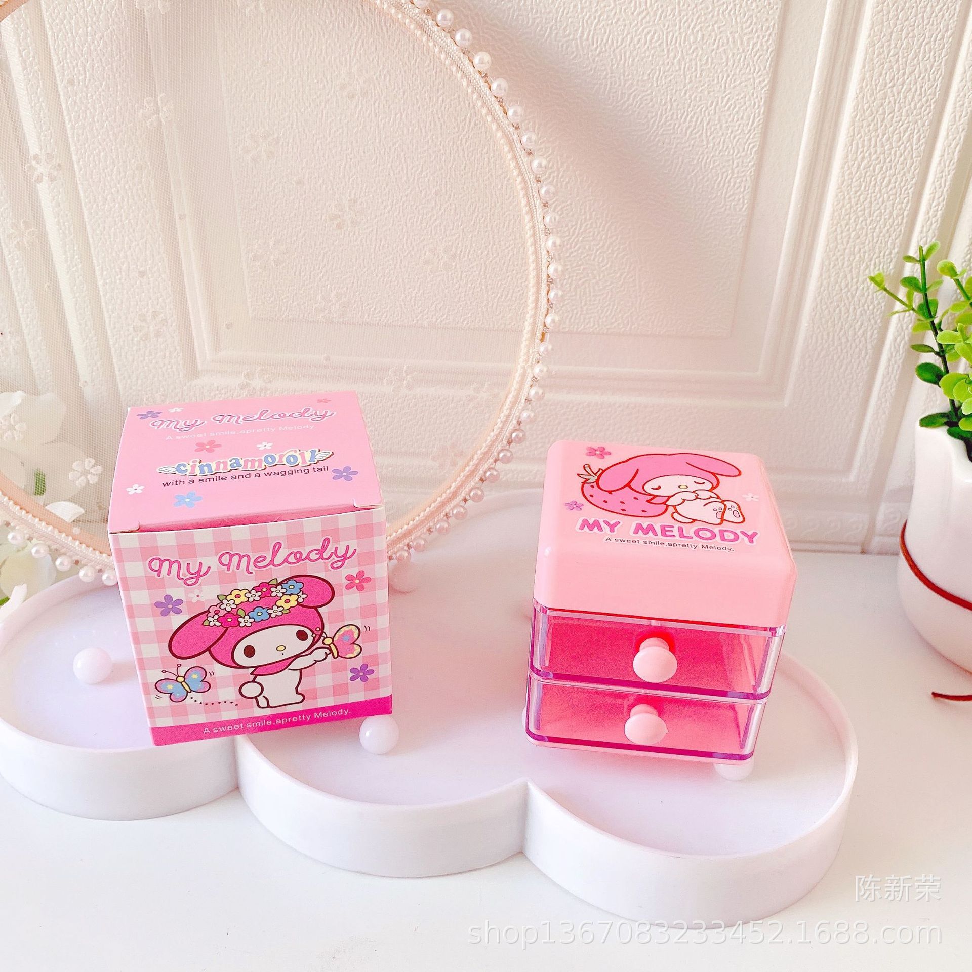 新款可爱双层翻盖抽屉式首饰盒小白耳环项链戒指分类饰品桌面盒
