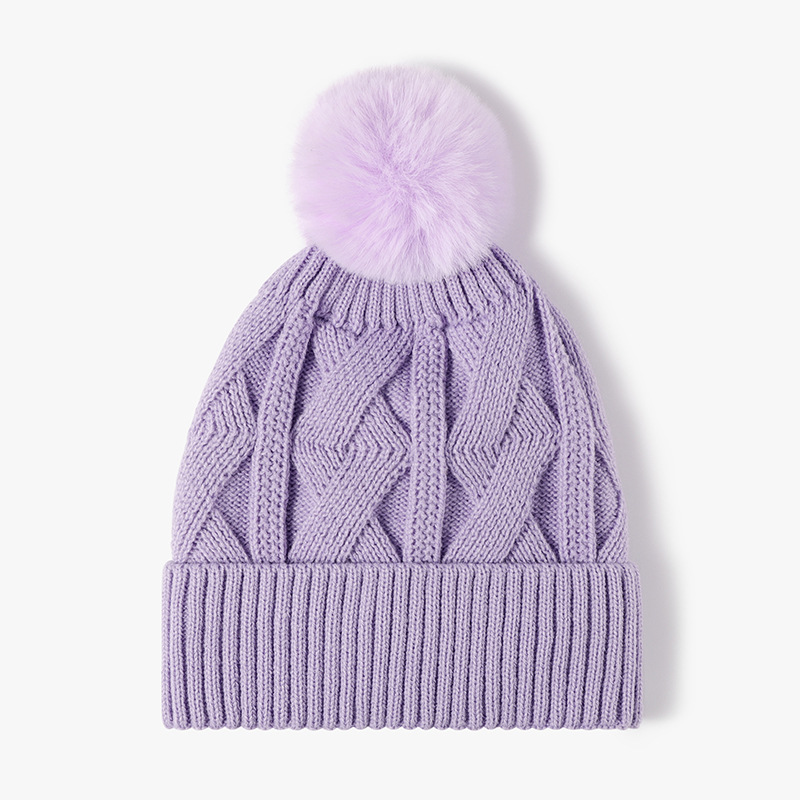 新款提花带毛球欧美户外保暖针织帽女出行加厚无檐冷帽时尚毛线帽