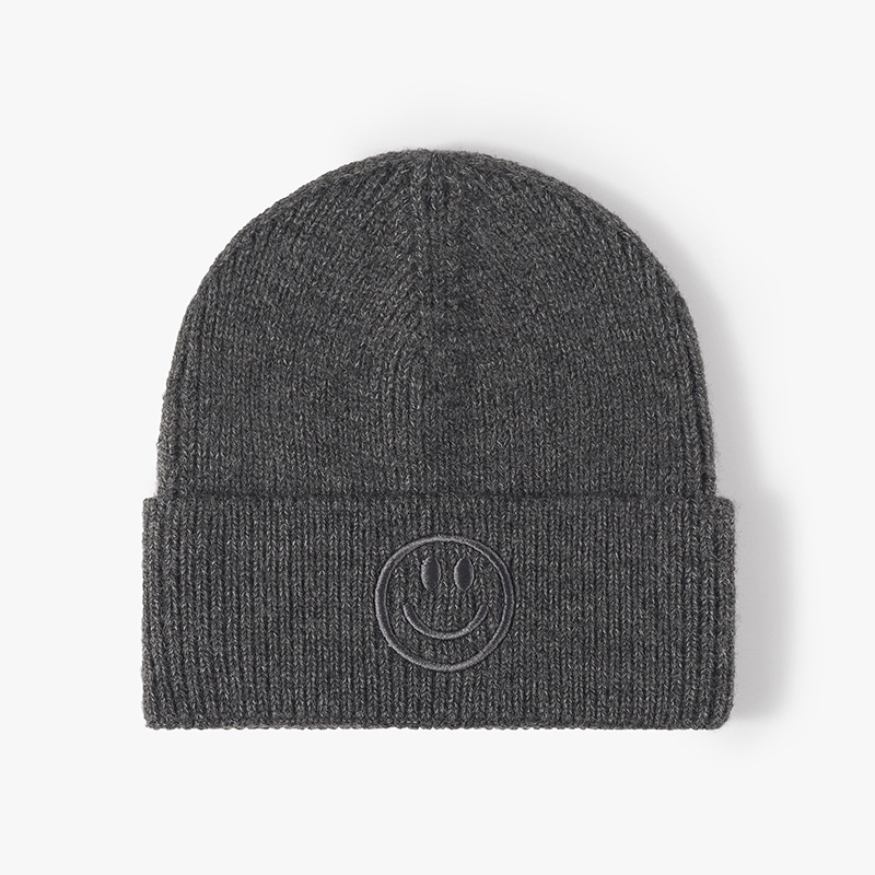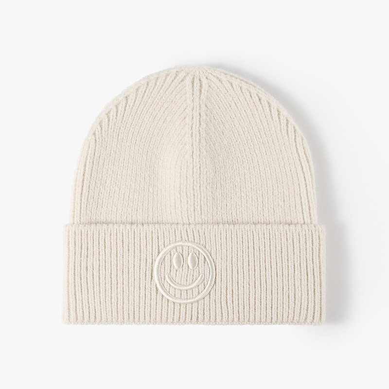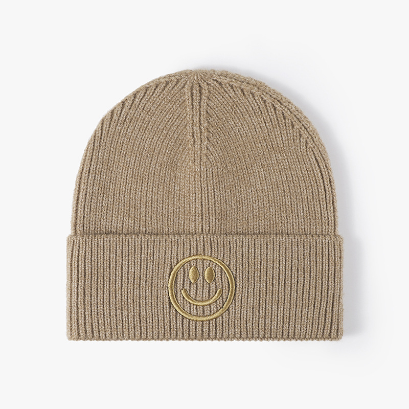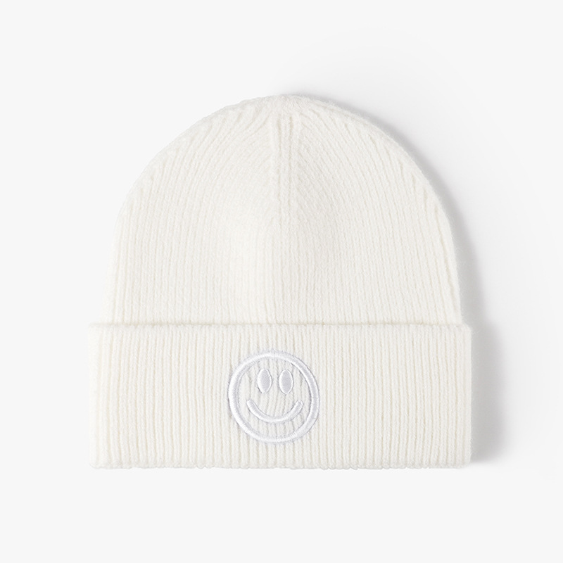 秋冬笑脸立体刺绣男士保暖冷帽百搭时尚户外护耳女跨境针织毛线帽