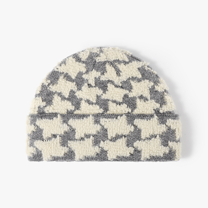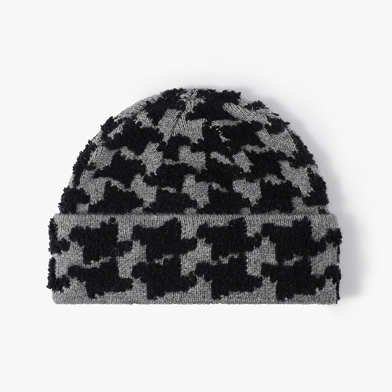 毛线帽女秋冬新款百搭提花拼色冷帽大头为户外保暖加厚针织帽批发