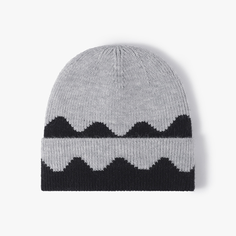 百搭保暖提花拼色冬款女士冷帽时尚保暖加厚毛线帽无檐跨境针织帽