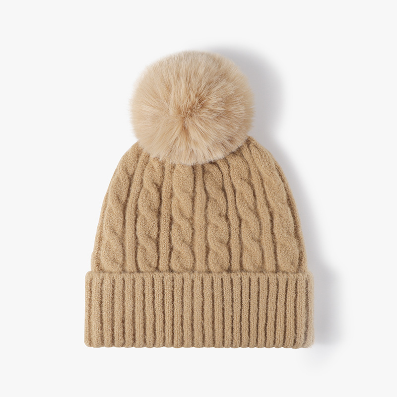 新款加绒加厚提花带毛球女针织帽跨境会外保暖出游骑行毛线帽批发