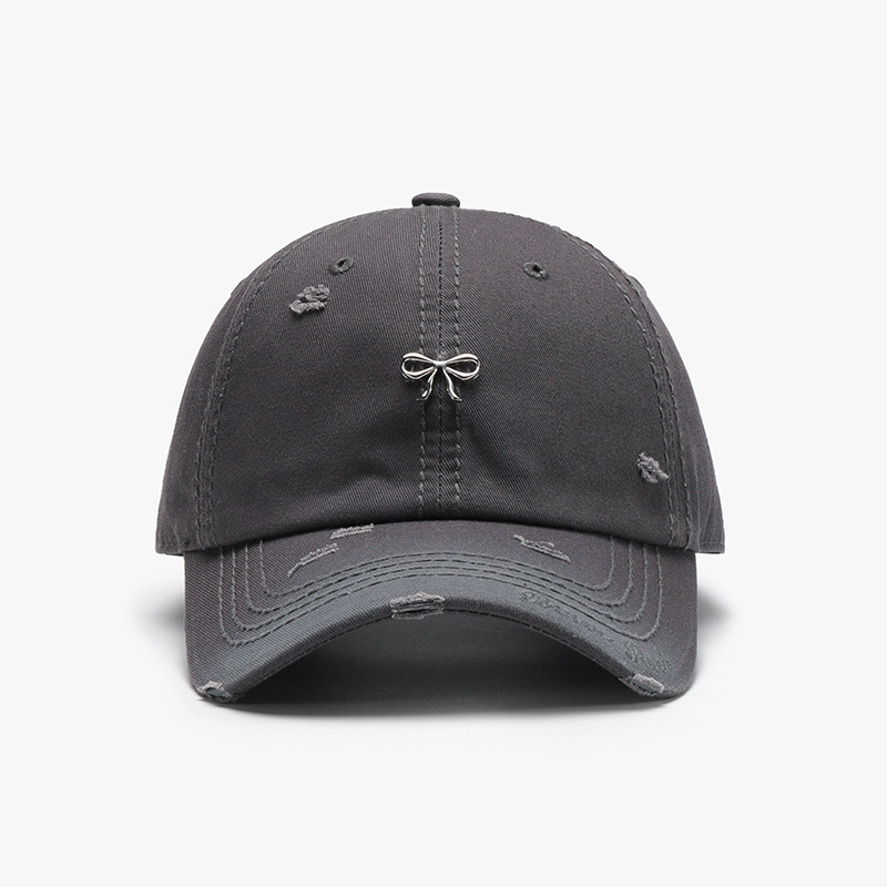 蝴蝶结软顶破洞时尚百搭透气棒球帽户外弯檐遮阳防晒棒球帽子批发