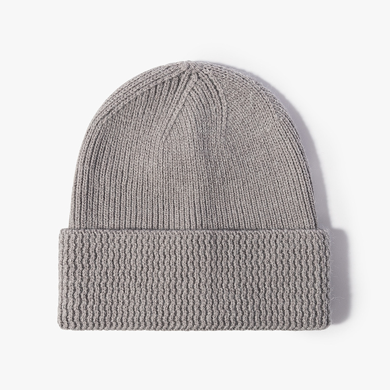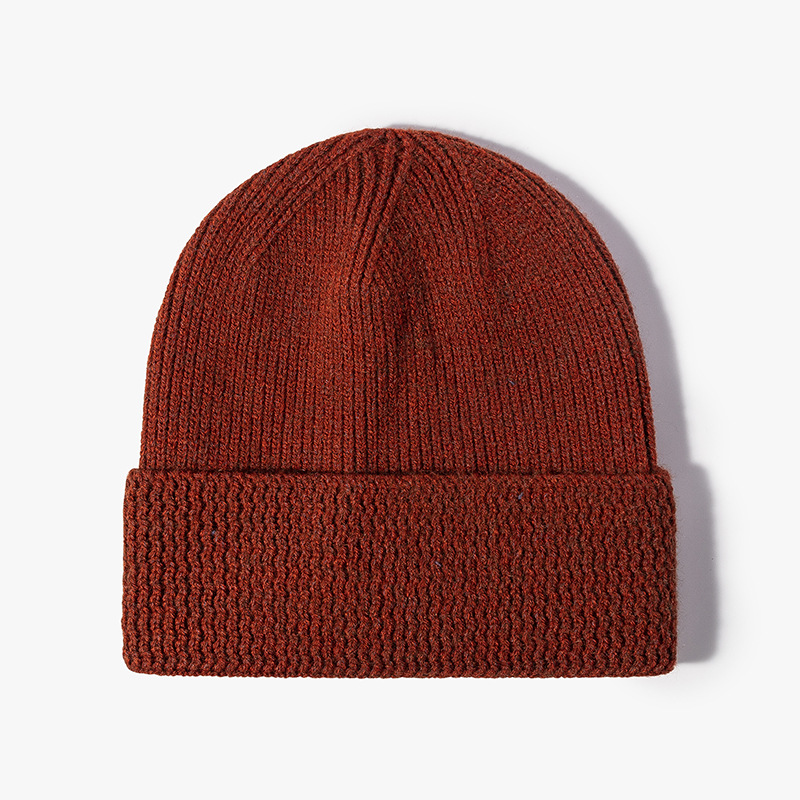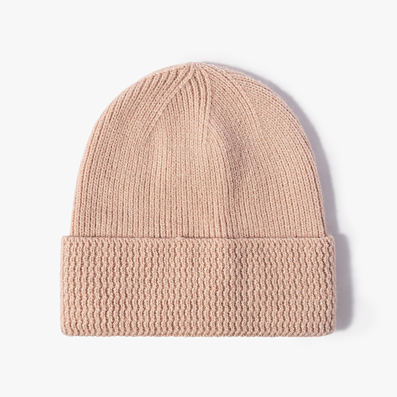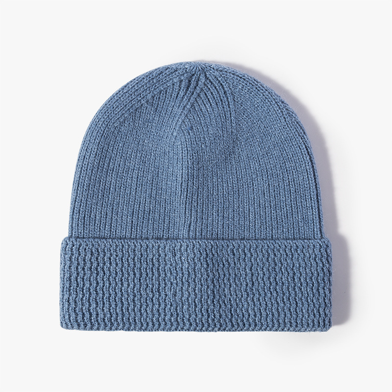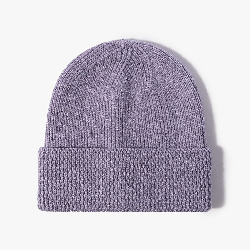 秋冬欧美时尚无檐翻边冷帽男跨境出游学生女士毛线帽单色针织帽子