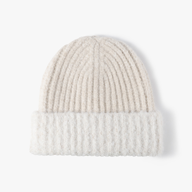 帽子女冬欧美跨境拼色保暖羊毛针织帽户外出行护耳无檐时尚毛线帽