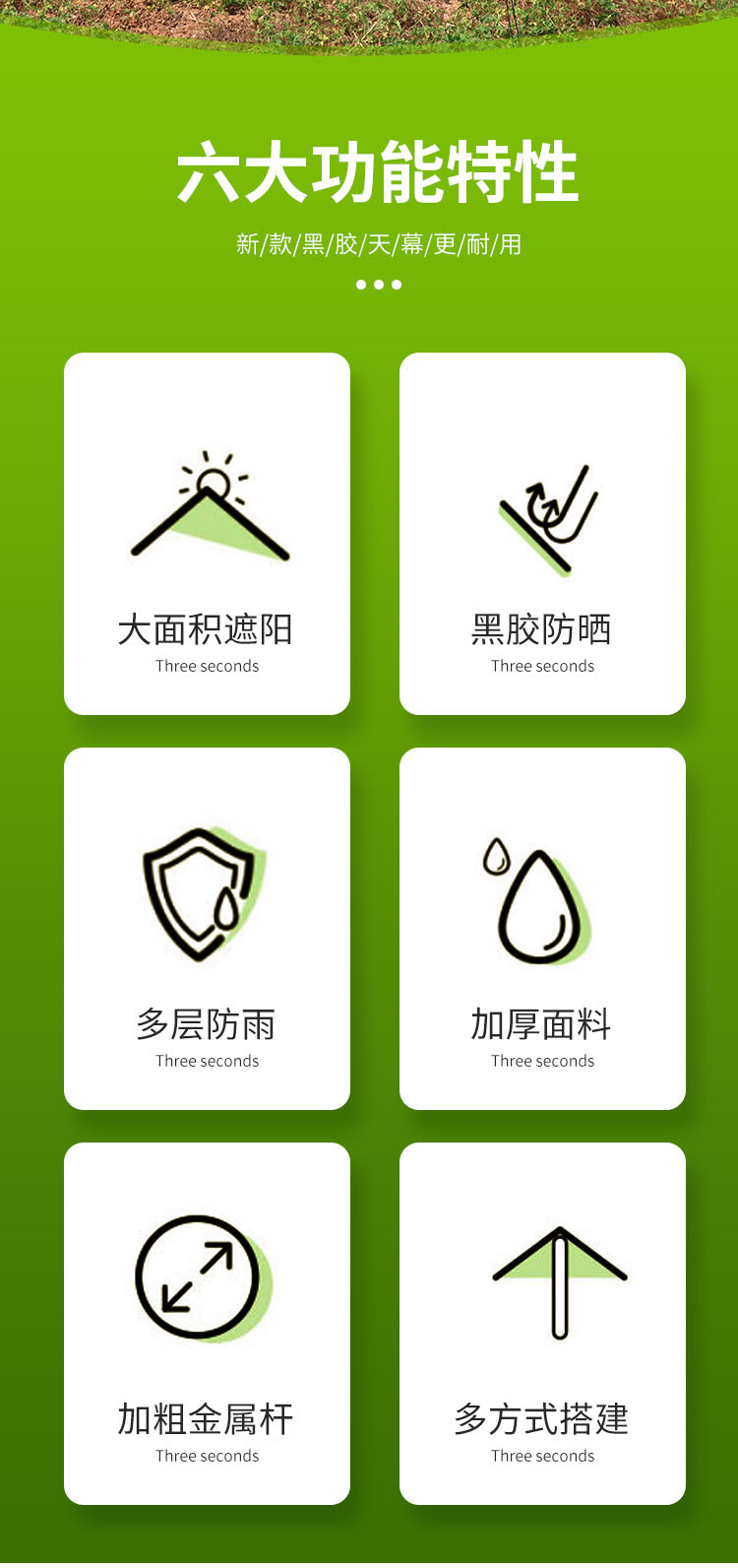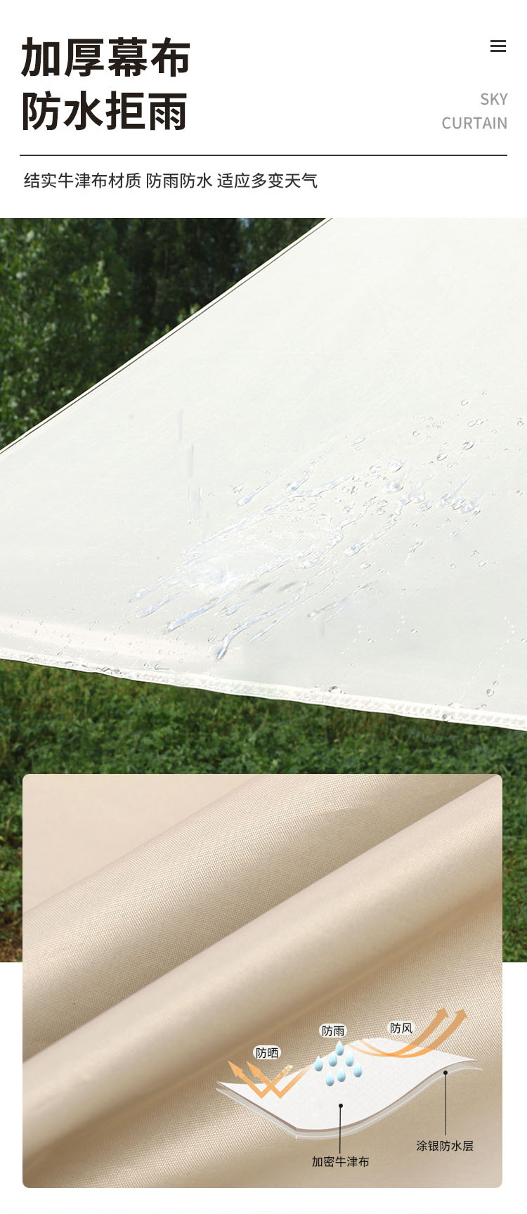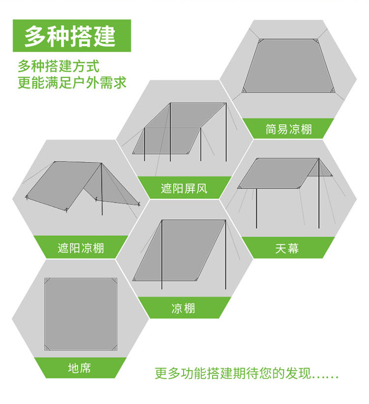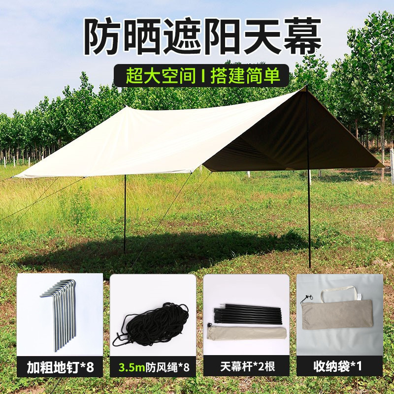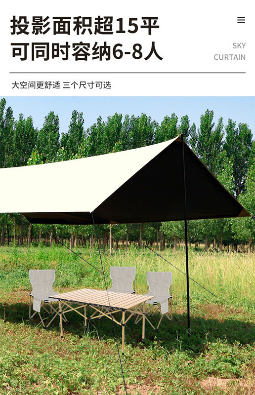 露营户外黑胶天幕帐篷防晒防紫外线防水六角八角便携遮阳防风天幕