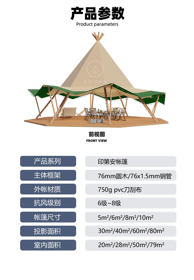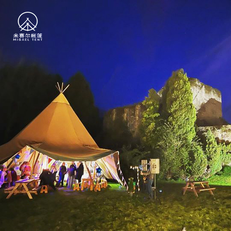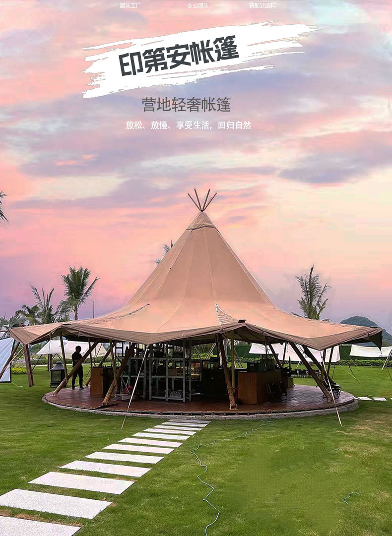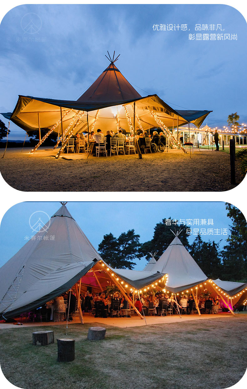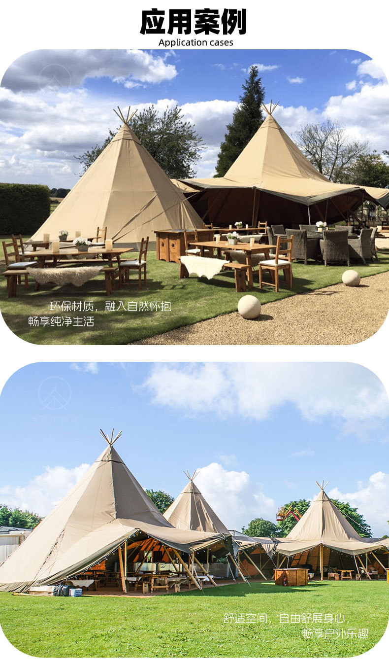 户外tipi印第安帐篷露营基地大型团建展览防水遮阳尖顶大草帽帐篷