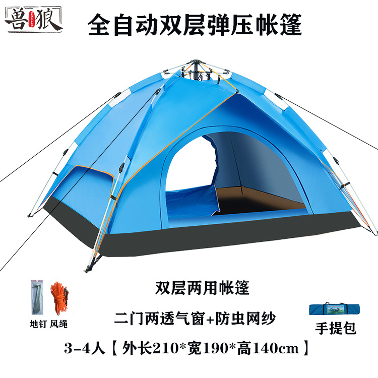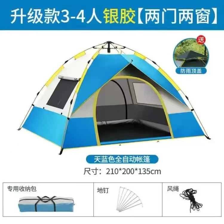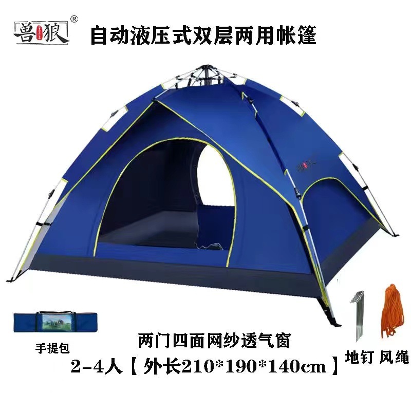 露营帐篷户外两用全自动真双层速开帐篷1-2-4人野营帐篷 可印广告