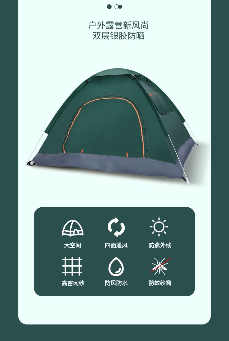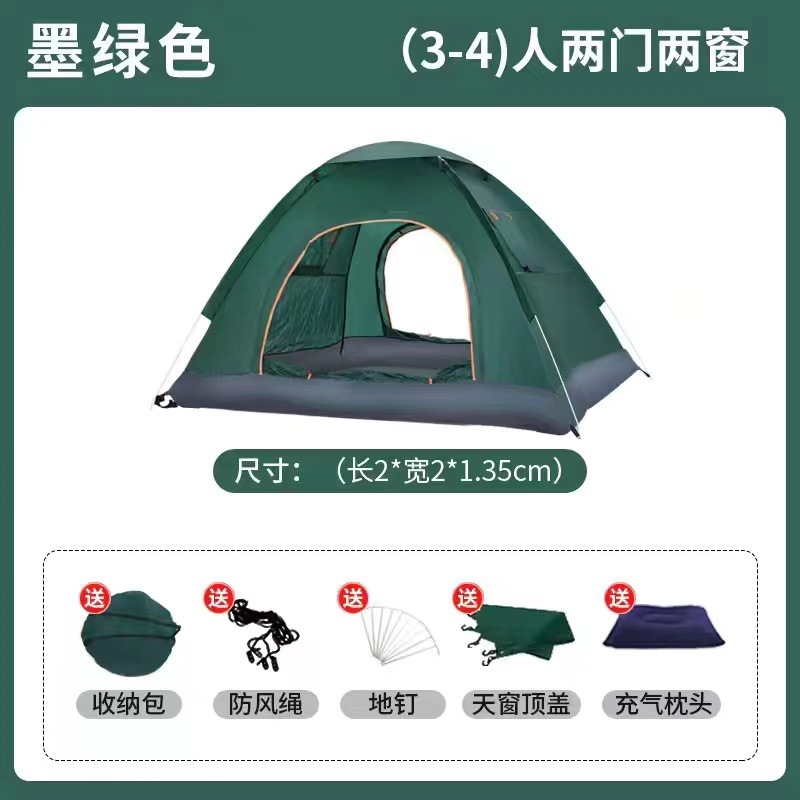 | 墨绿色帐篷+送充气枕+防潮垫 | USD $19.54 | 996 piece available |