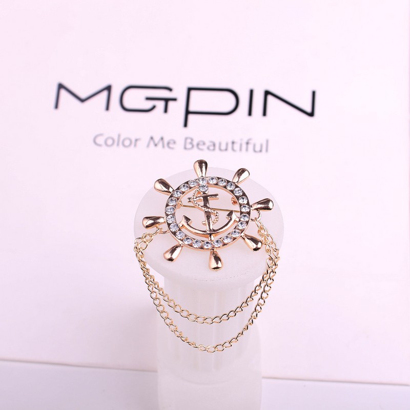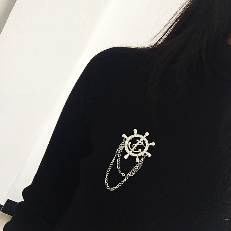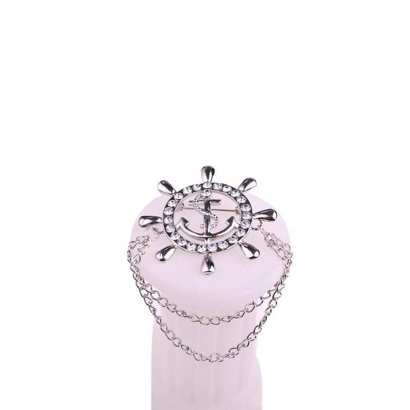 Z67 韩版水钻船锚胸针 男士西服海军船舵徽章饰品
