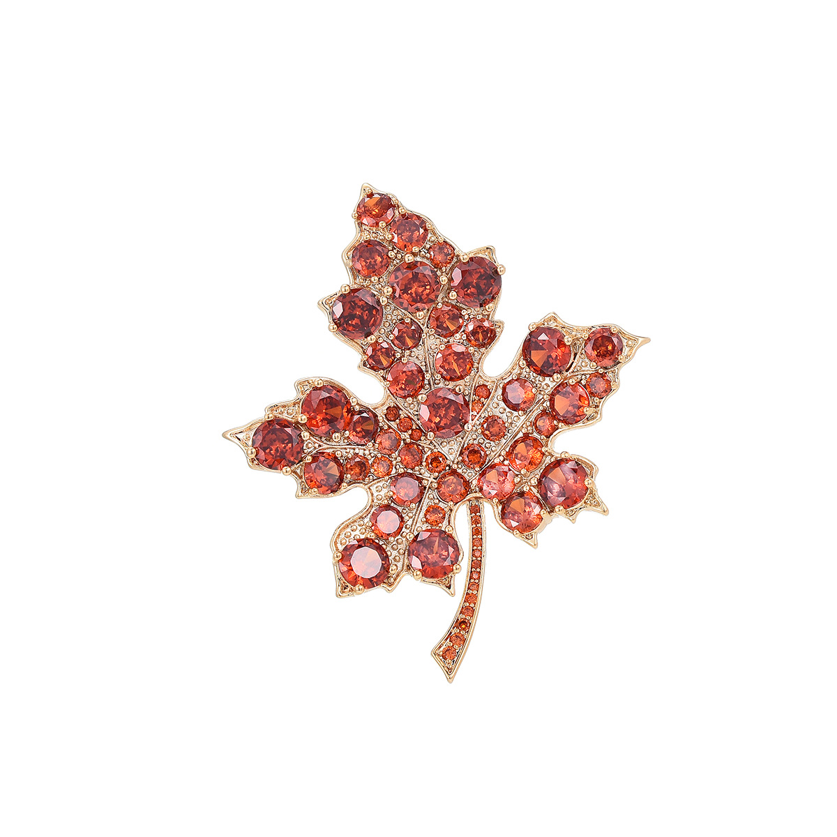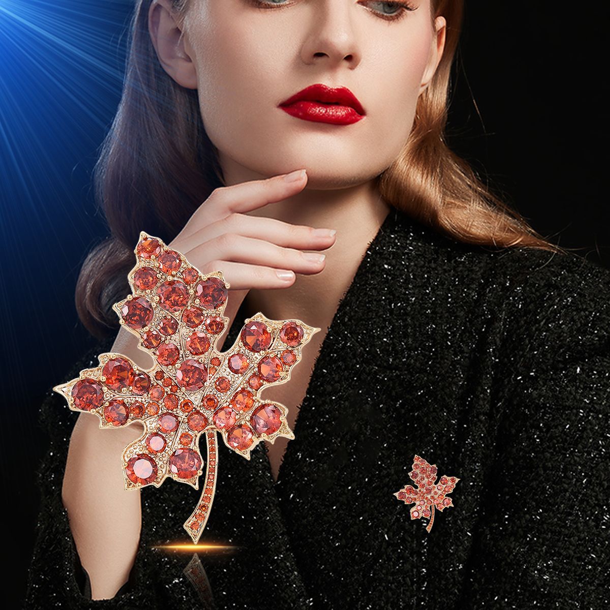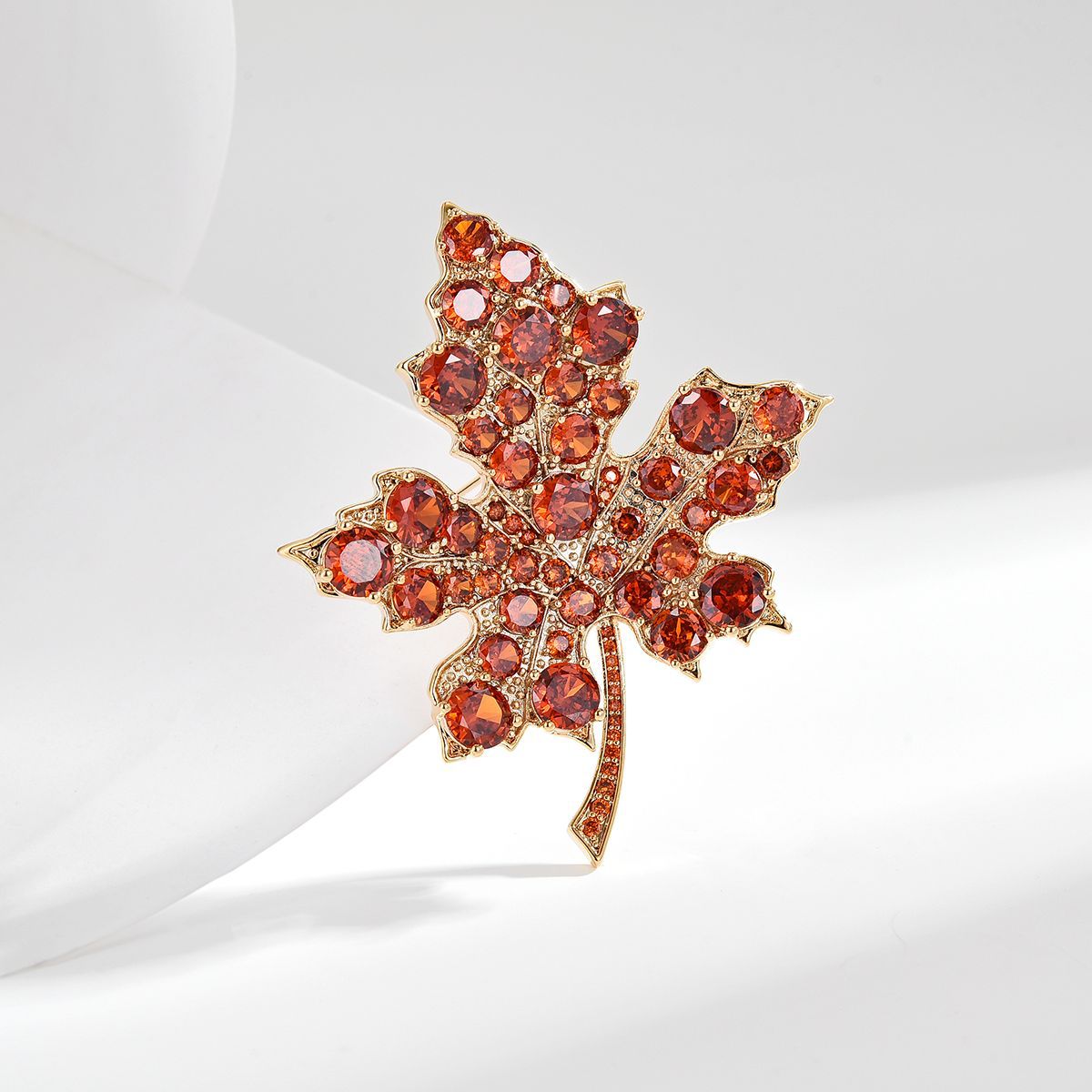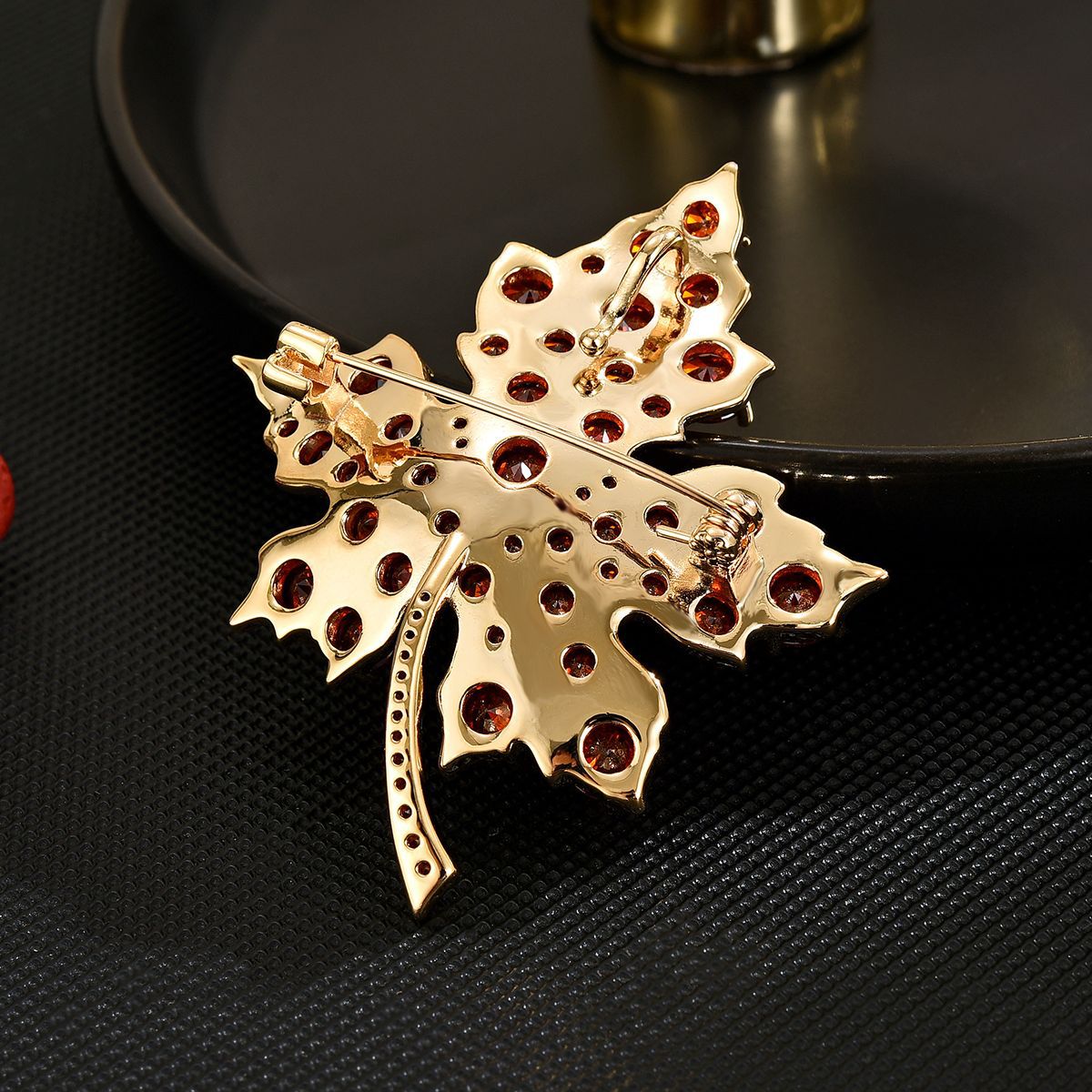 高档时尚满钻锆石枫叶胸针轻奢复古高级感复古西装礼服胸花配饰女