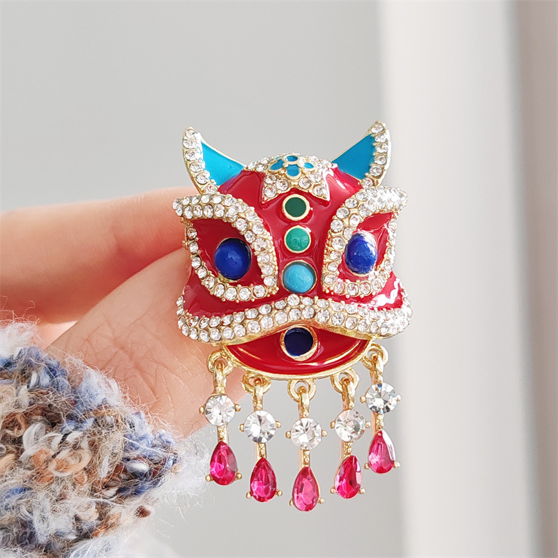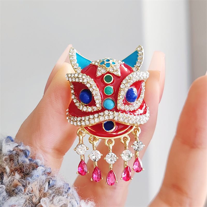 中国风醒狮胸针别针古装汉服国潮轻奢高档胸花女西装毛衣外套配饰