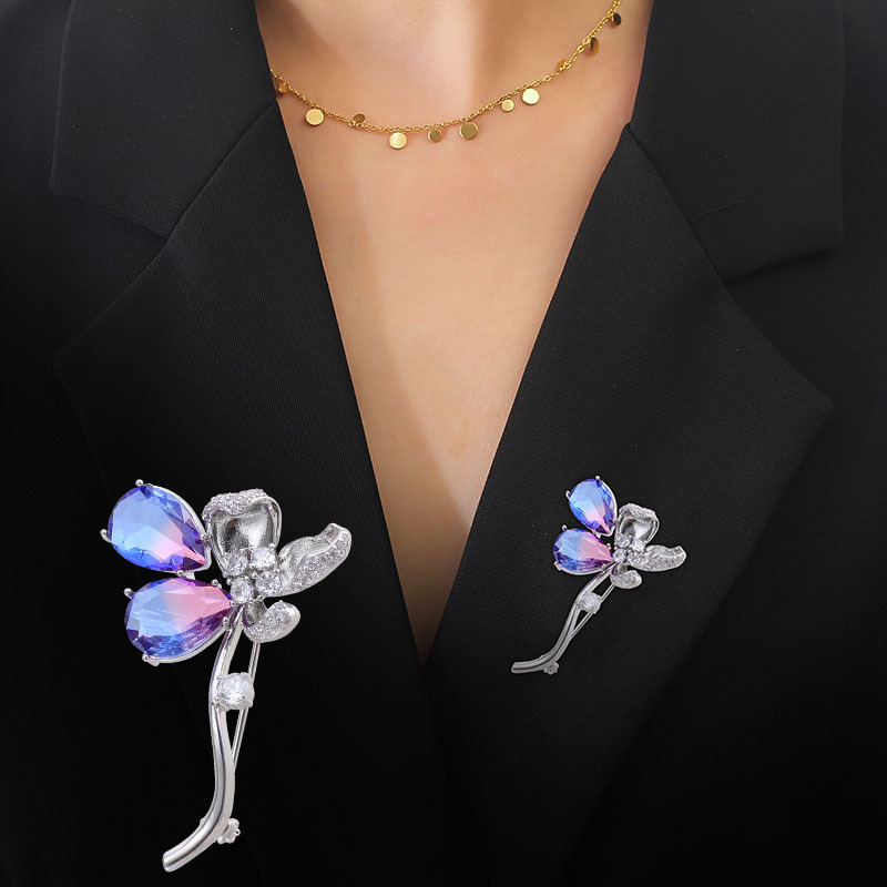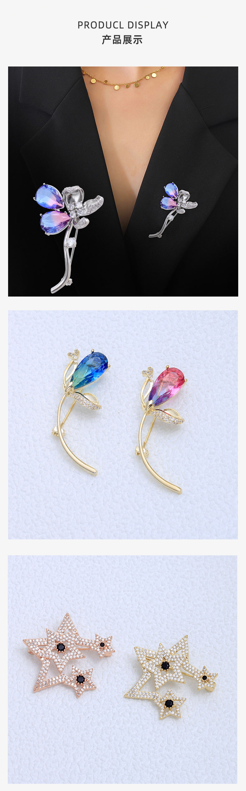时尚轻奢风高档镶锆胸针女士合金胸花多款可选花卉别针精致饰品