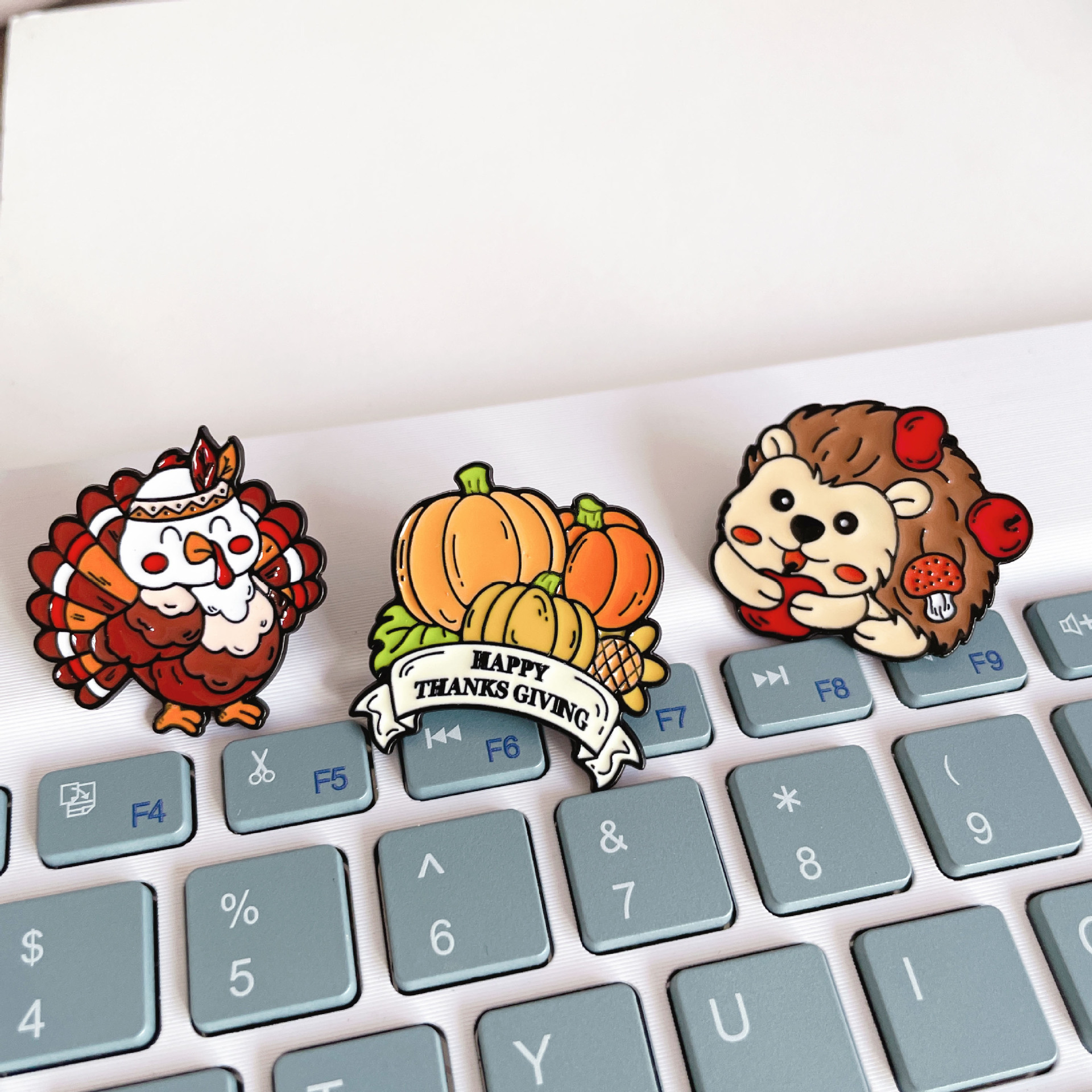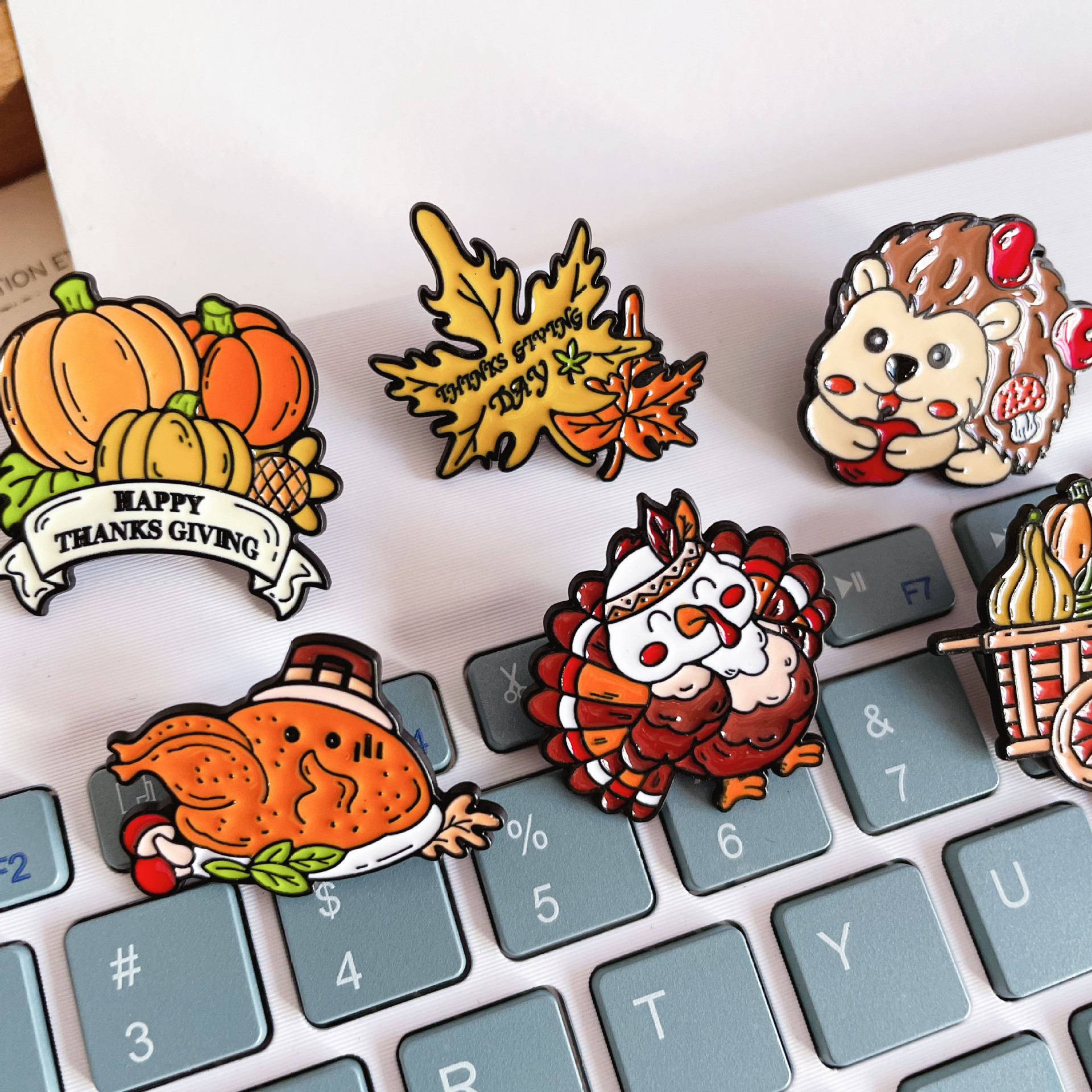 可爱小刺猬火鸡胸针卡通火鸡南瓜枫叶感恩节创意金属徽章学生配饰