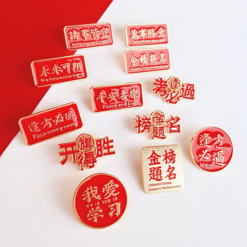 新款逢考必过 金榜题名胸针红色励志徽章学生毕业 祝福语配饰