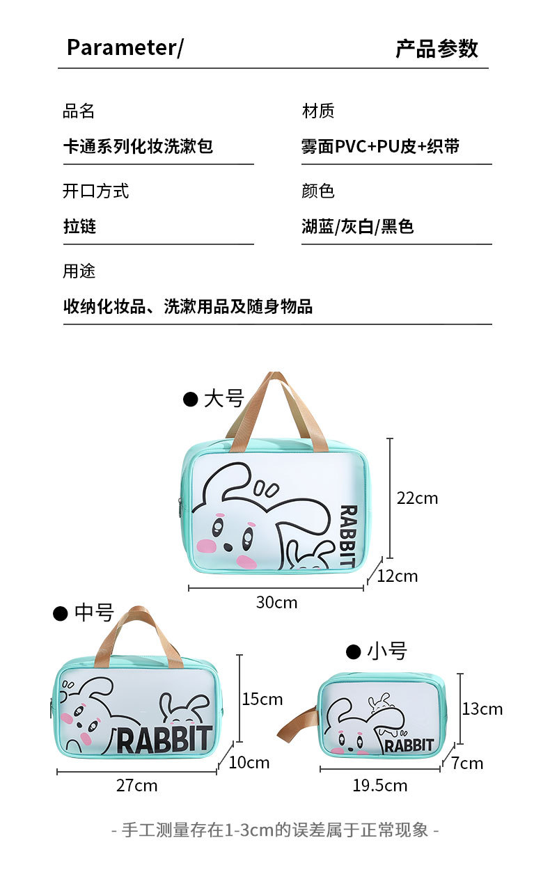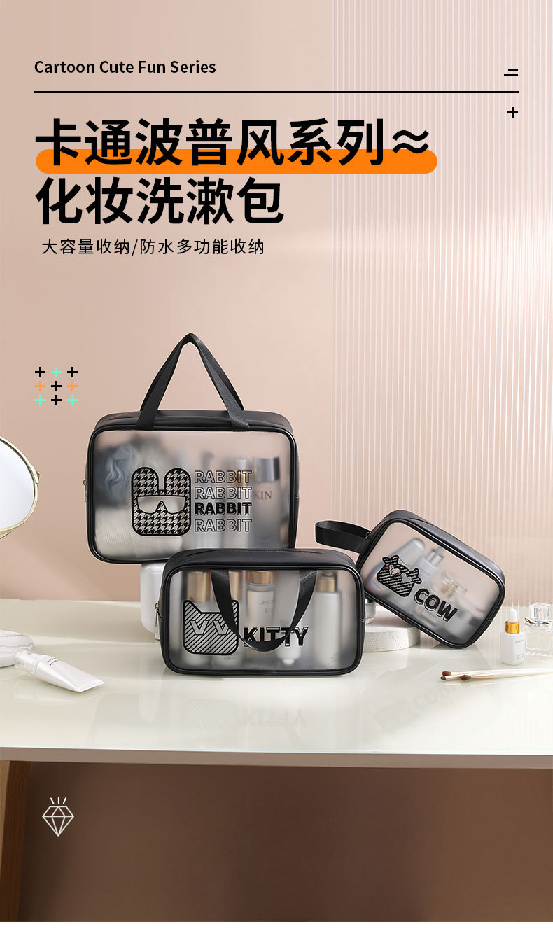 卡通PVC化妆包大容量加厚防水收纳包三件套收纳包便携旅行洗漱包