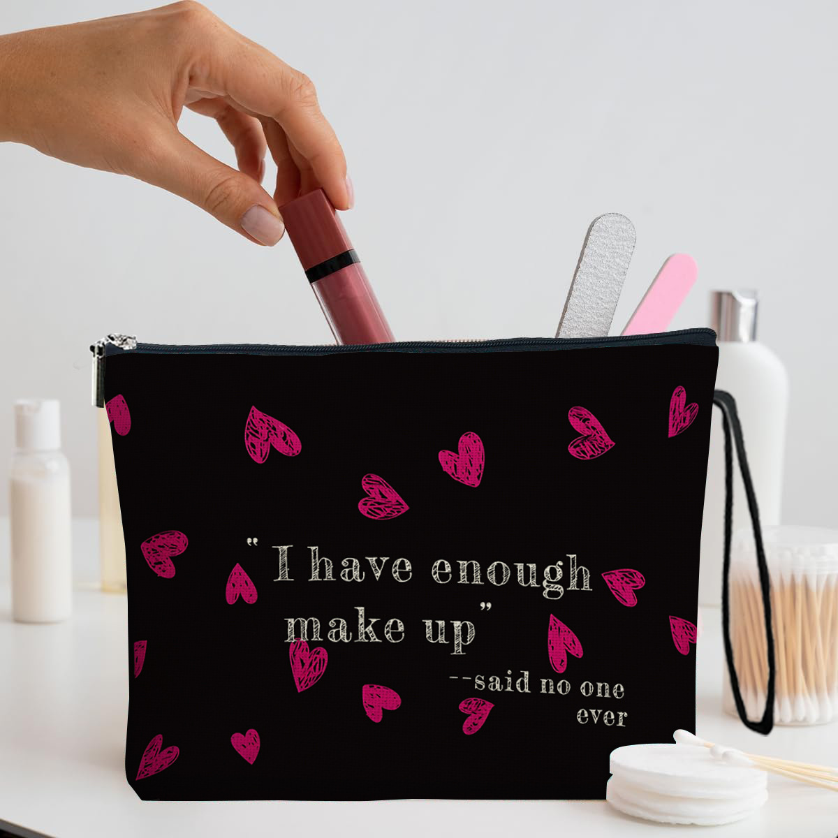 新款红色爱心化妆包居家拉链洗漱袋女士口红化妆袋户外便携收纳包