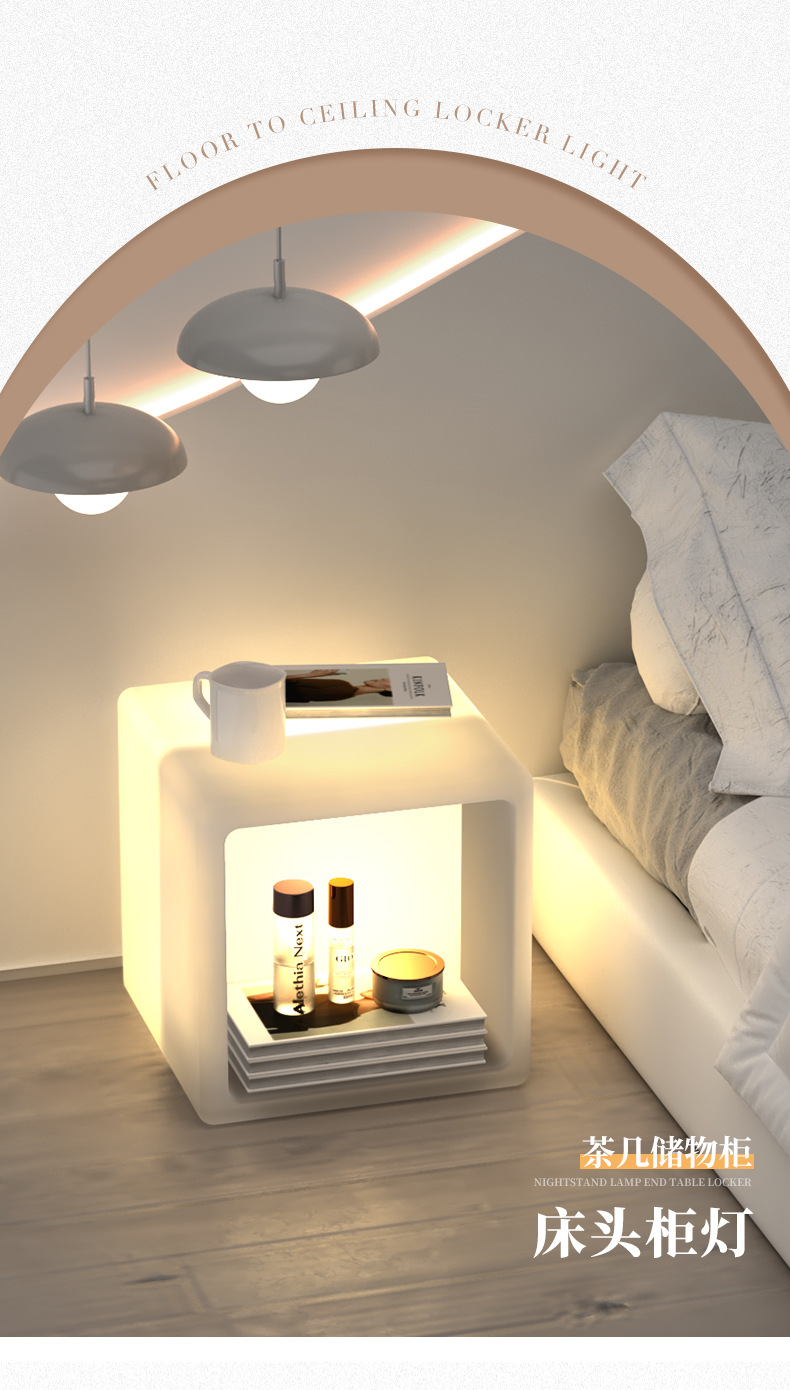 外贸专供格子落地灯置物架床头柜一体式台灯现代简约装饰氛围灯