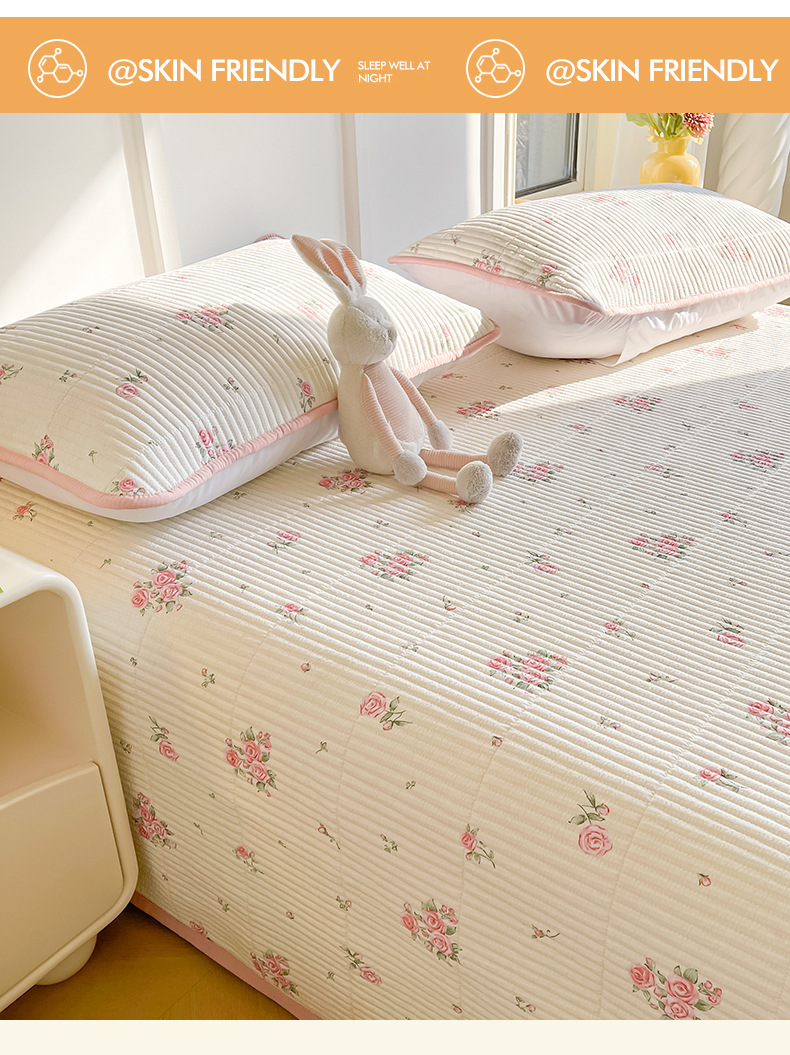 A类母婴级纯棉床盖三件套裸睡水洗棉卡通小清新床单床罩床上用品