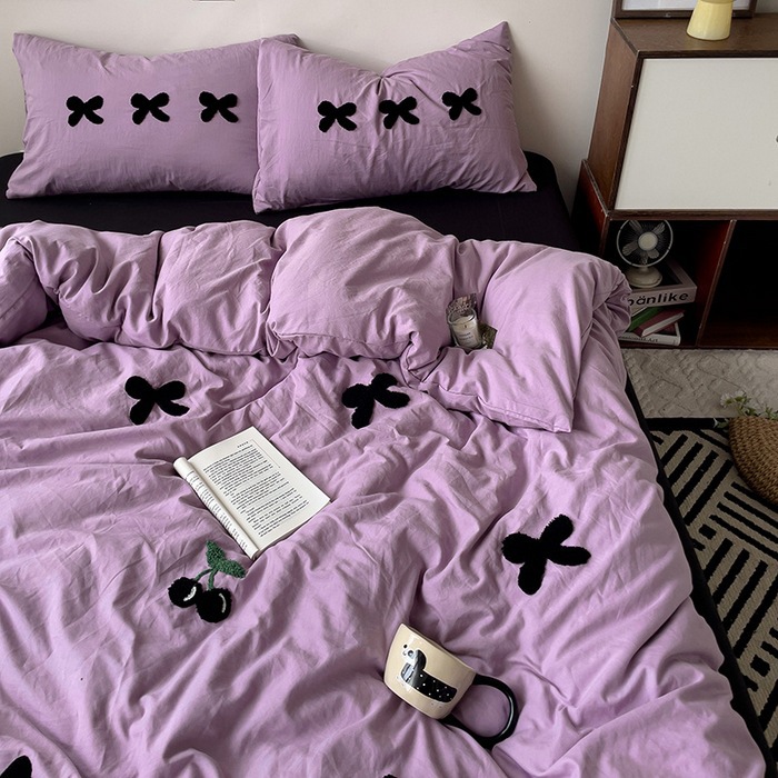 A类ins床上用品纯水洗棉四件套被套被罩床笠全套学生宿舍三4件套