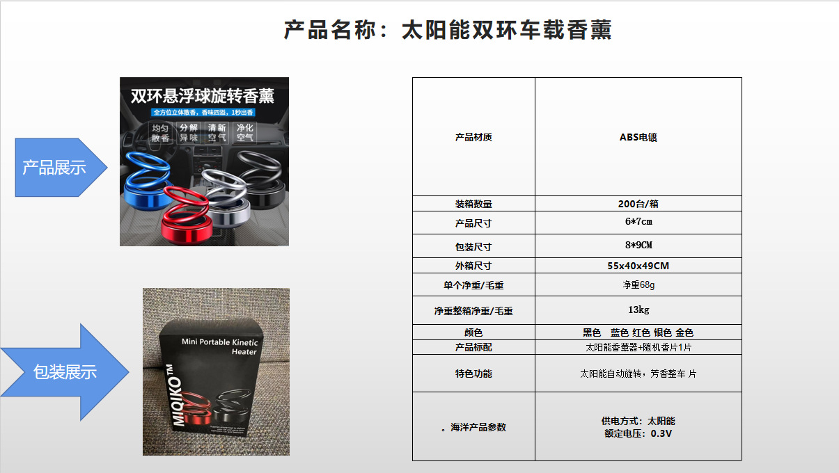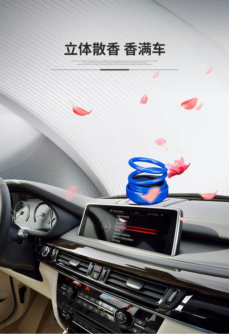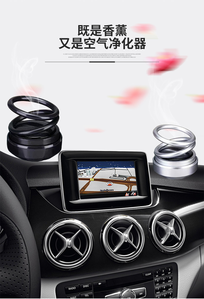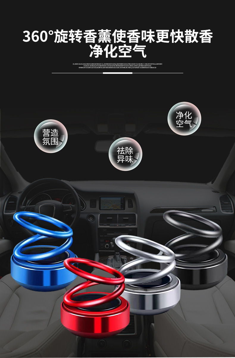 新品太阳能双环悬浮旋转香薰持久淡香汽车内装饰品摆件车载香水座