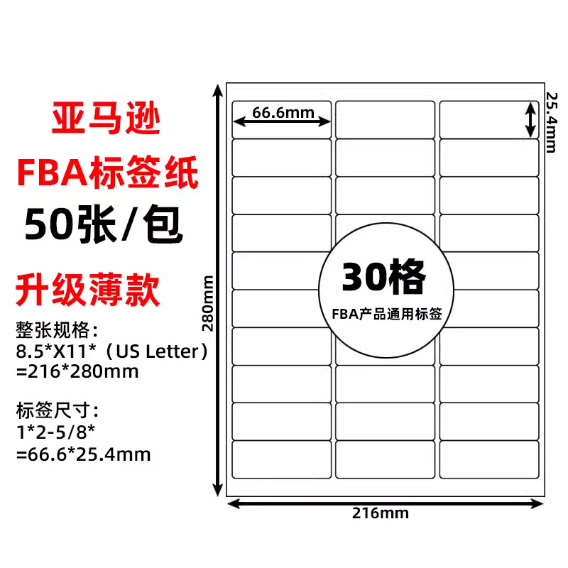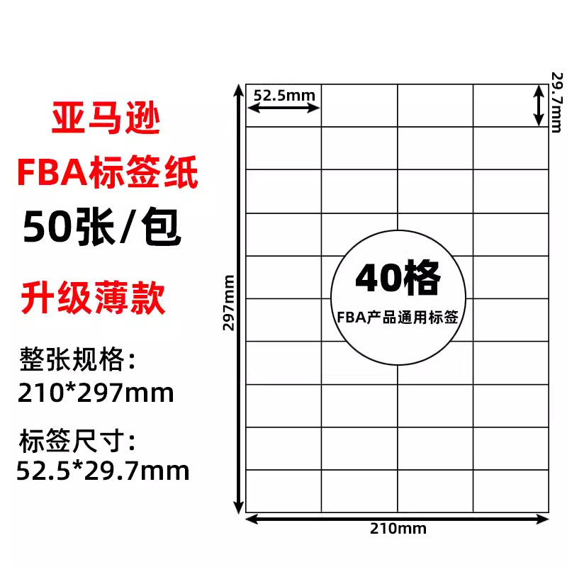 亚马逊条形码标签纸A4不干胶打印纸切割条码 唛头sku产品条码贴纸