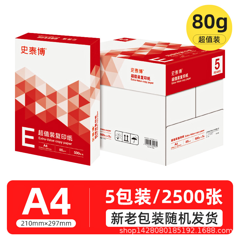 史泰博a4打印纸复印纸70g500张/包 草稿纸电脑打印纸批发办公用品