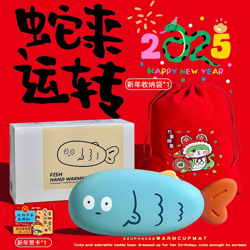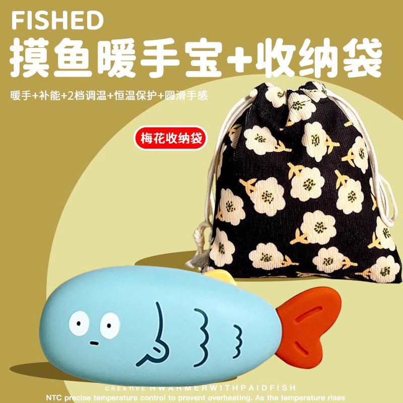 摸鱼暖手宝新年礼物可爱迷你暖手宝usb充电款卡通创意礼品暖宝宝