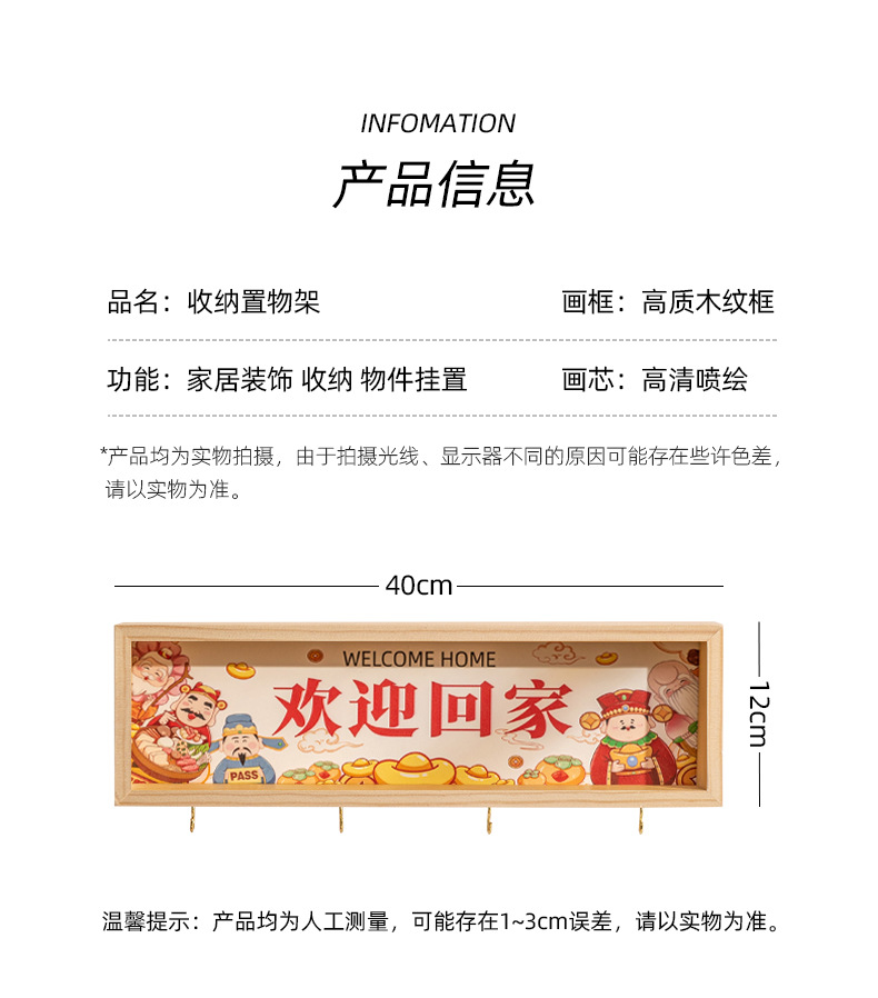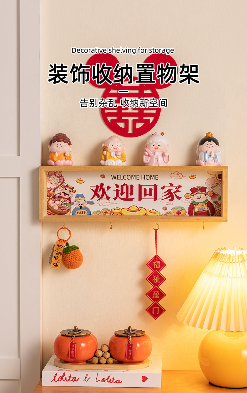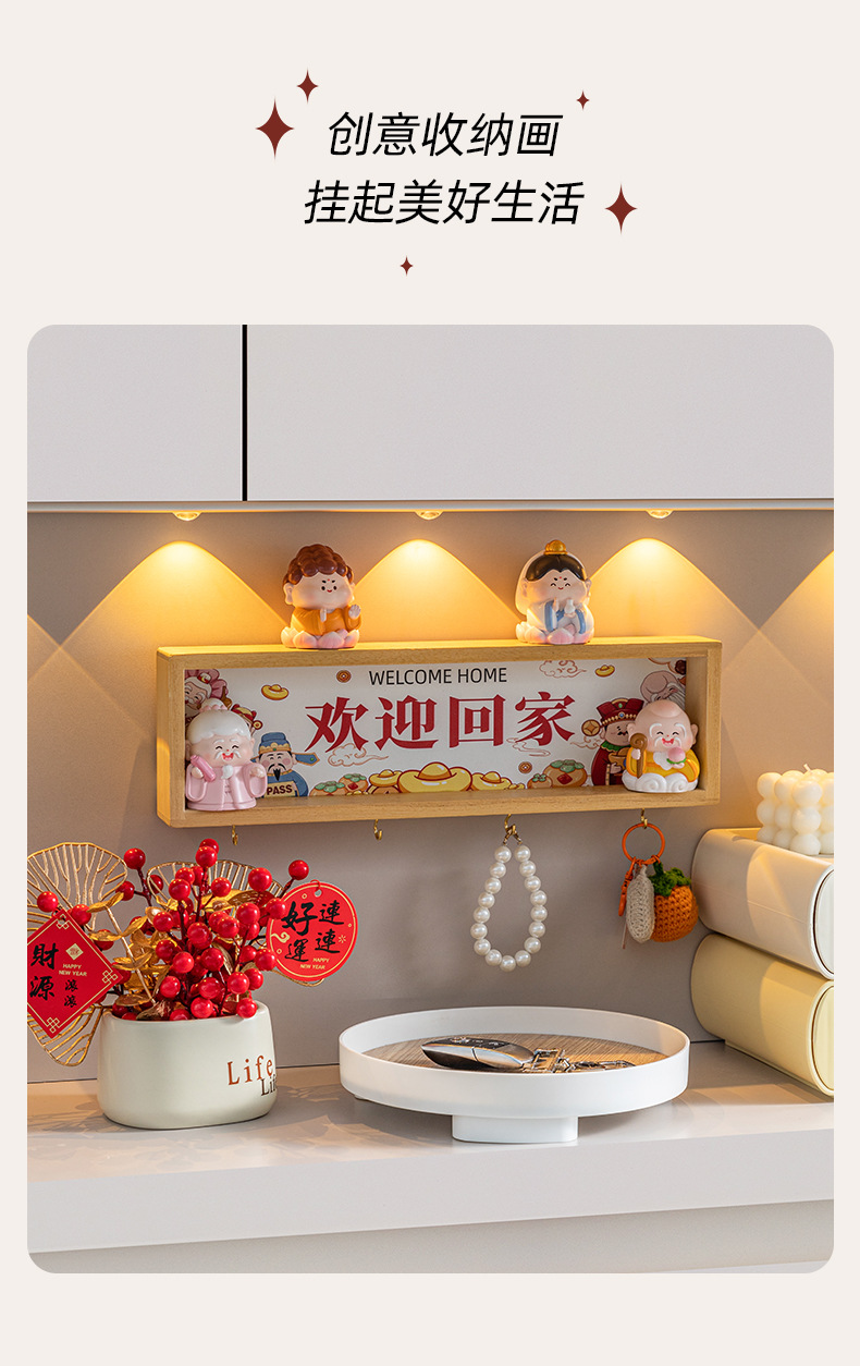 欢迎回家入户门口放钥匙收纳神器挂钩免打孔装饰墙壁上玄关置物架