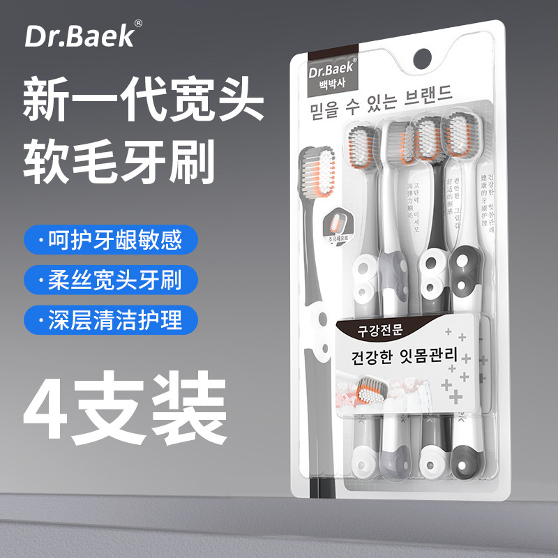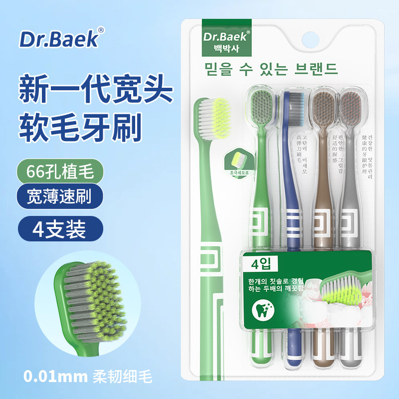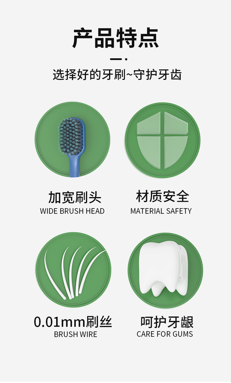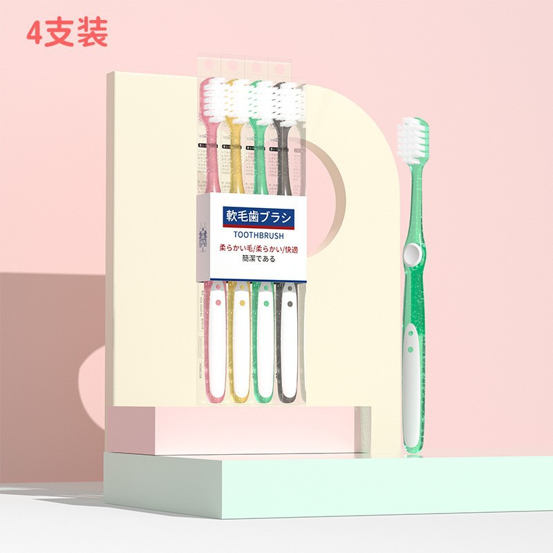 【四支装】高级软毛宽头牙刷厂家正品成人家用清洁护龈牙刷批发