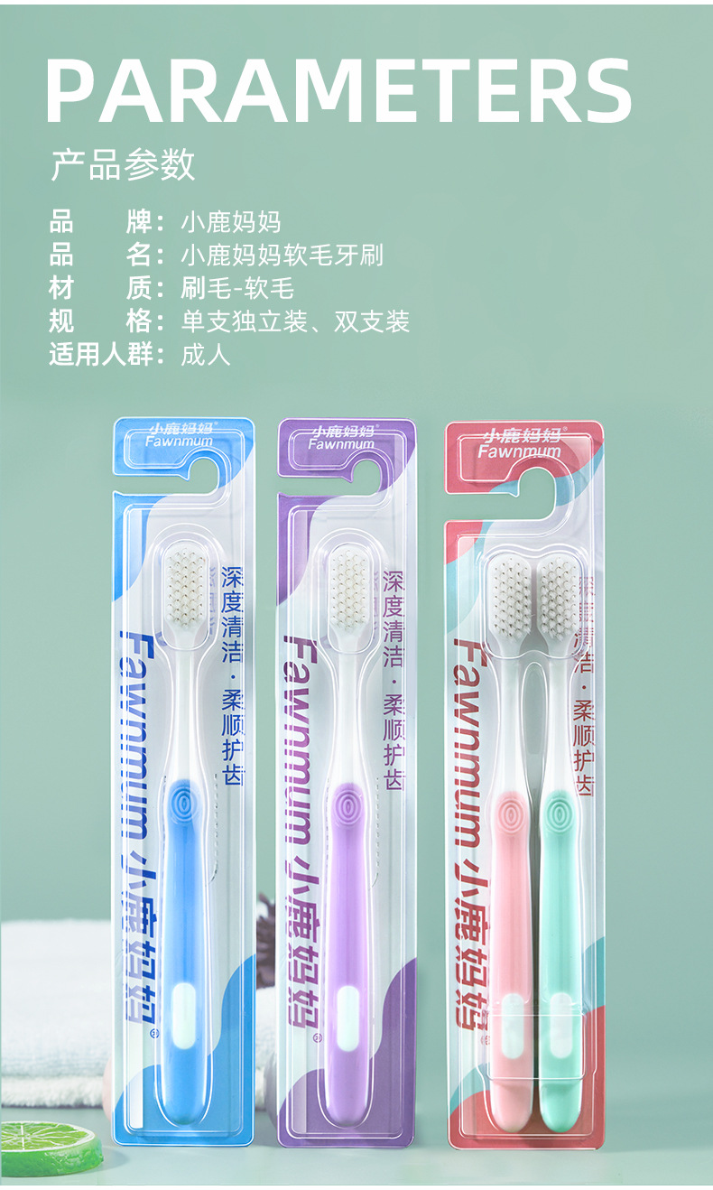 小鹿妈妈牙刷 软毛护龈清洁牙刷独立家庭装成人牙刷厂家批发直销