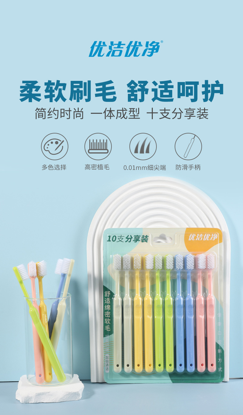 品质牙刷10支装家庭用待客用小头软毛牙刷商超热款现货批发代发